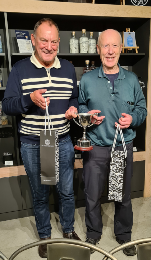 The evening event had 44 players competing for the Pairs Stewarts Rum Cup, the current holders, Davie Aim & Mike Sinclair, stuck to their winning formulae to retain the cup, coming ahead of Penelope Smith & Rob Royall with Allan Leslie & Garry Williamson taking third place.