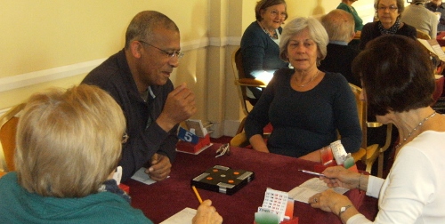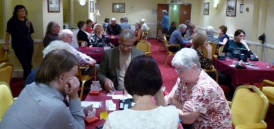 | Taking a break from organising the card play and sorting out those team score cards. |