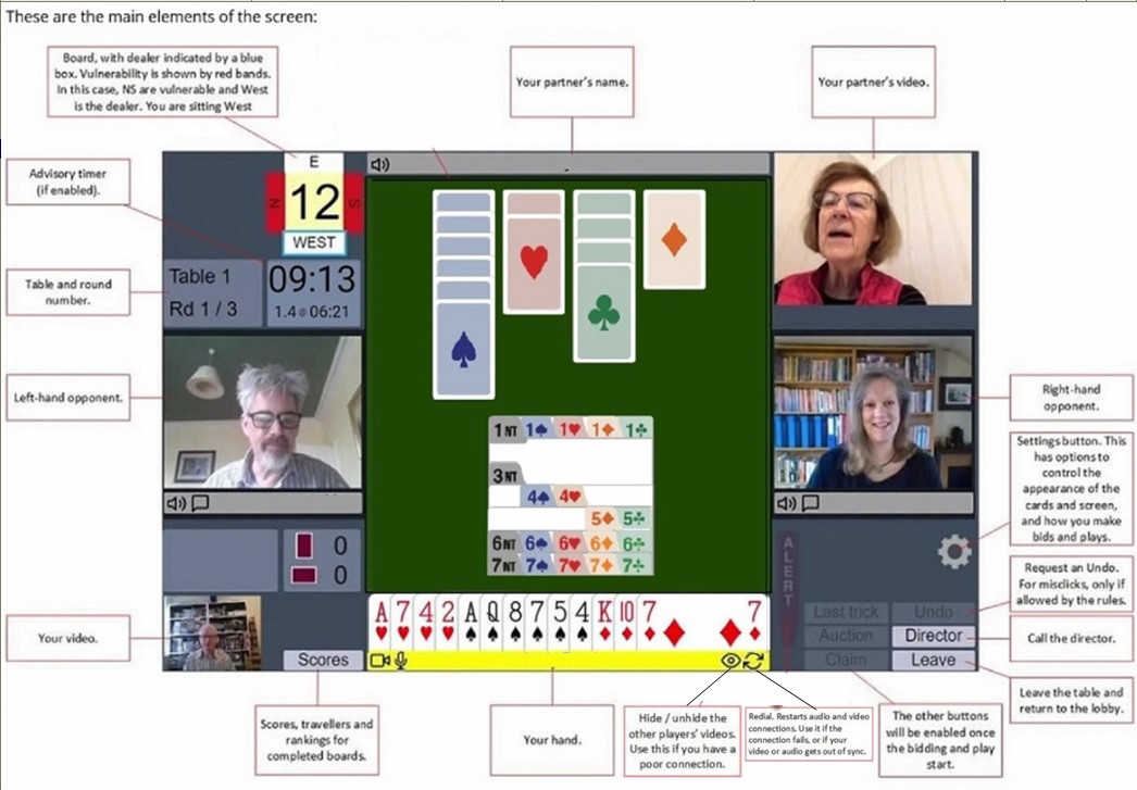 This is a screenshot of the playing area - it would be helpful if before joining your first RealBridge session you could make yourself familiar with it.....