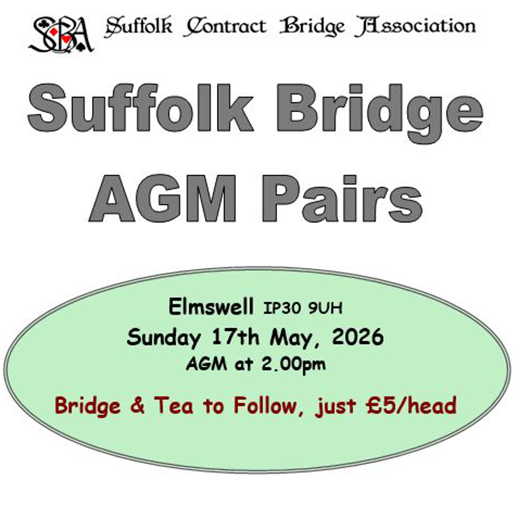 There is a dedicated tournament for Bury, Abbeygate and Stowmarket members on Realbridge on Wednesdays at 7.00 pm. Bury Bridge Club is also now back face to face at Southgate Community Centre on Thursdays, 6.45 for 7.00 pm. See the Bury St Edmunds Bridge Club website for details: