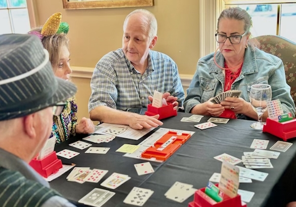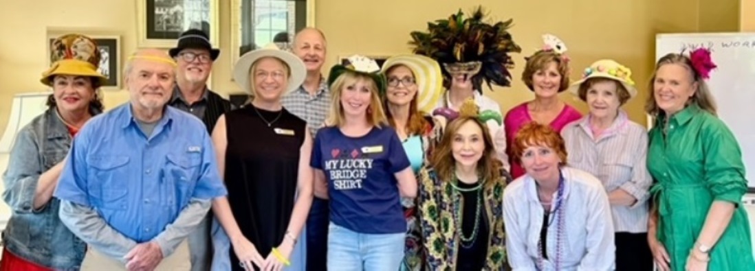 Beginner Bridge lessons are nearing completion. On Wednesday, April 22, 2025 we celebrated with a Crazy Hat Day/SLAM Party.