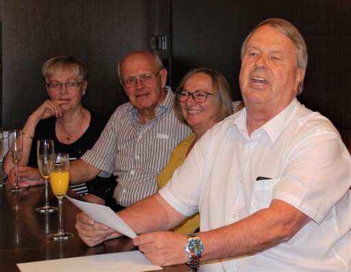 Thomas Suppes mit einem humorvollen Gedicht und Christel Breusch mit einem interessanten Quiz zum Thema "Bridge" im weitesten Sinne sorgen für Unterhaltung und Horst Brücker erinnert in seiner festrede u.a. an einige herausragende Persönlichkeiten und Ereignisse aus dem Jahr 1956 auf lokaler, nationaler und internationaler Ebene.