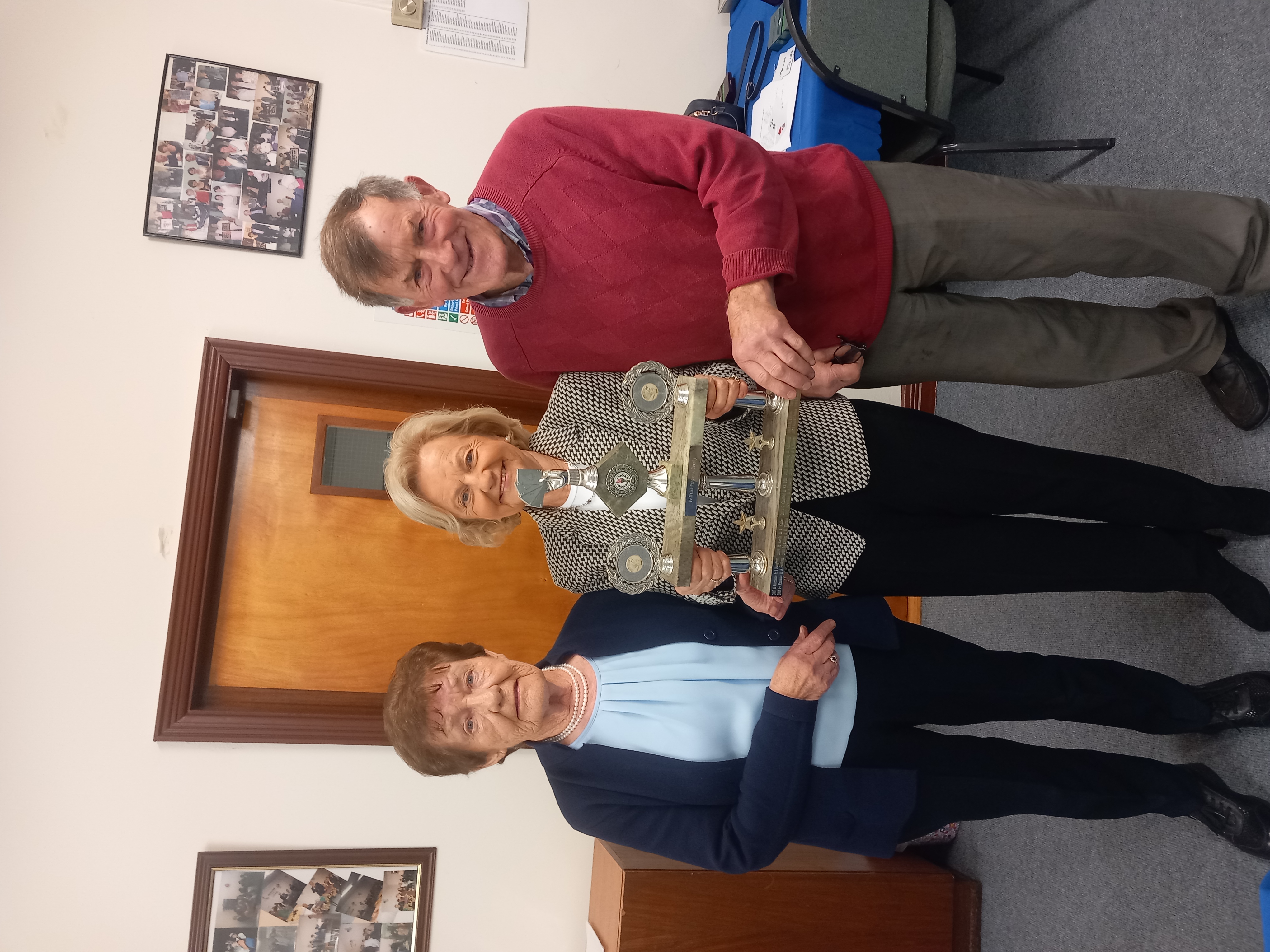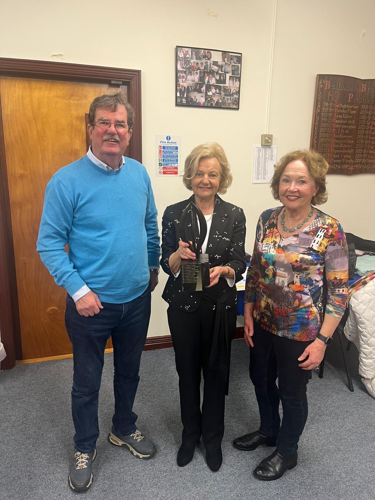 Eileen Morrisroe & Leo Flynn receiving the Fr Walsh trophy from President Angela Lyons.