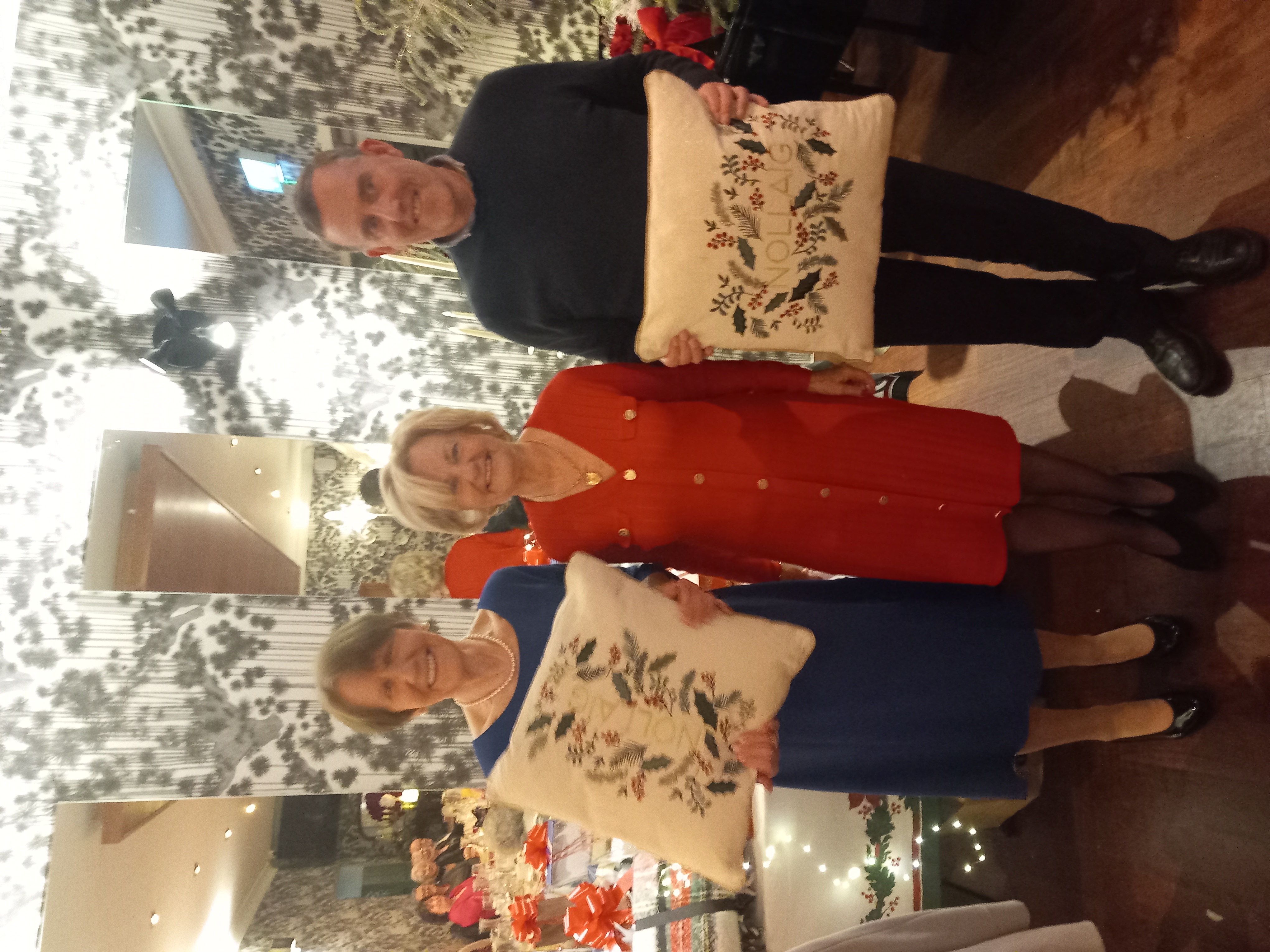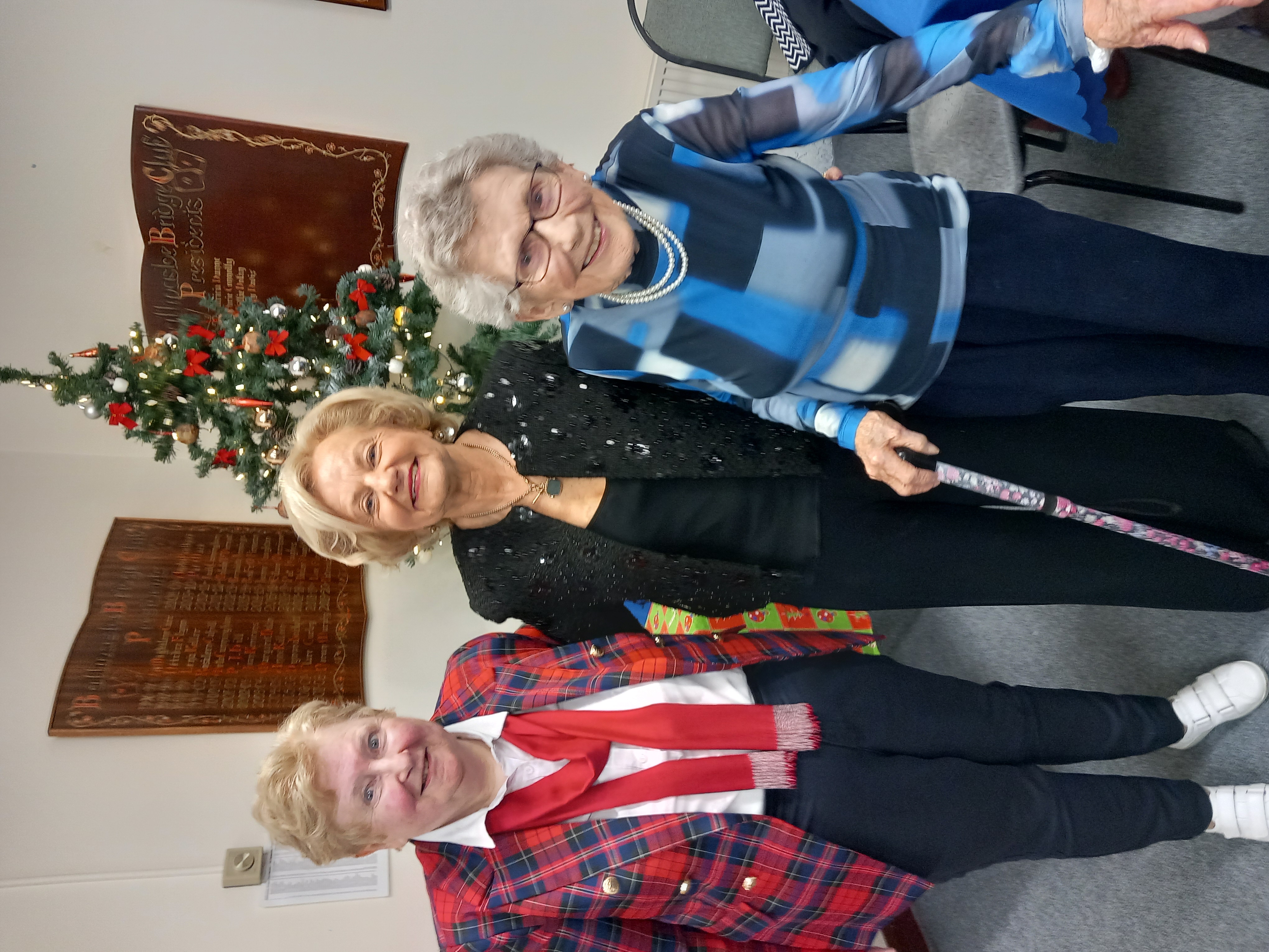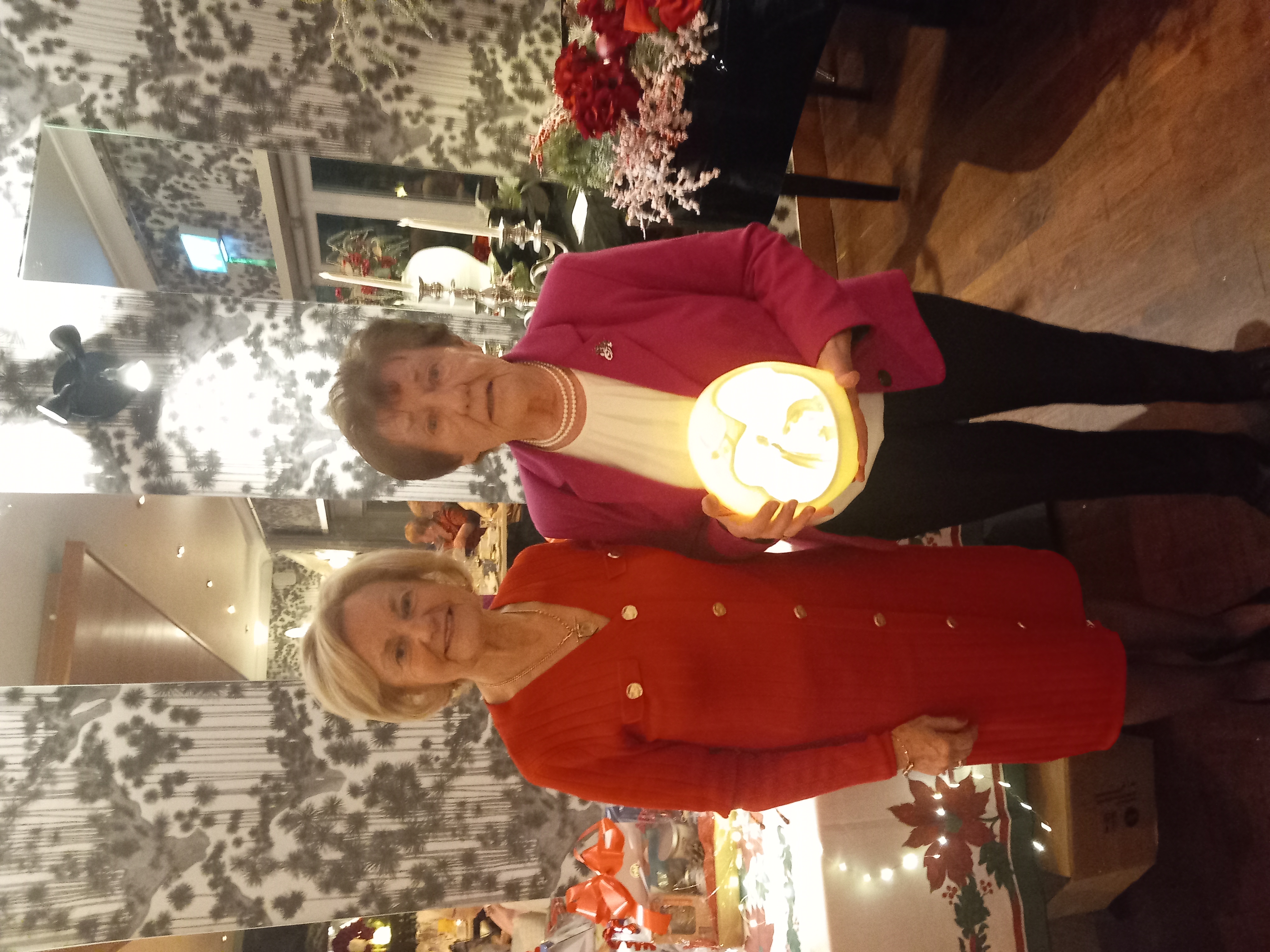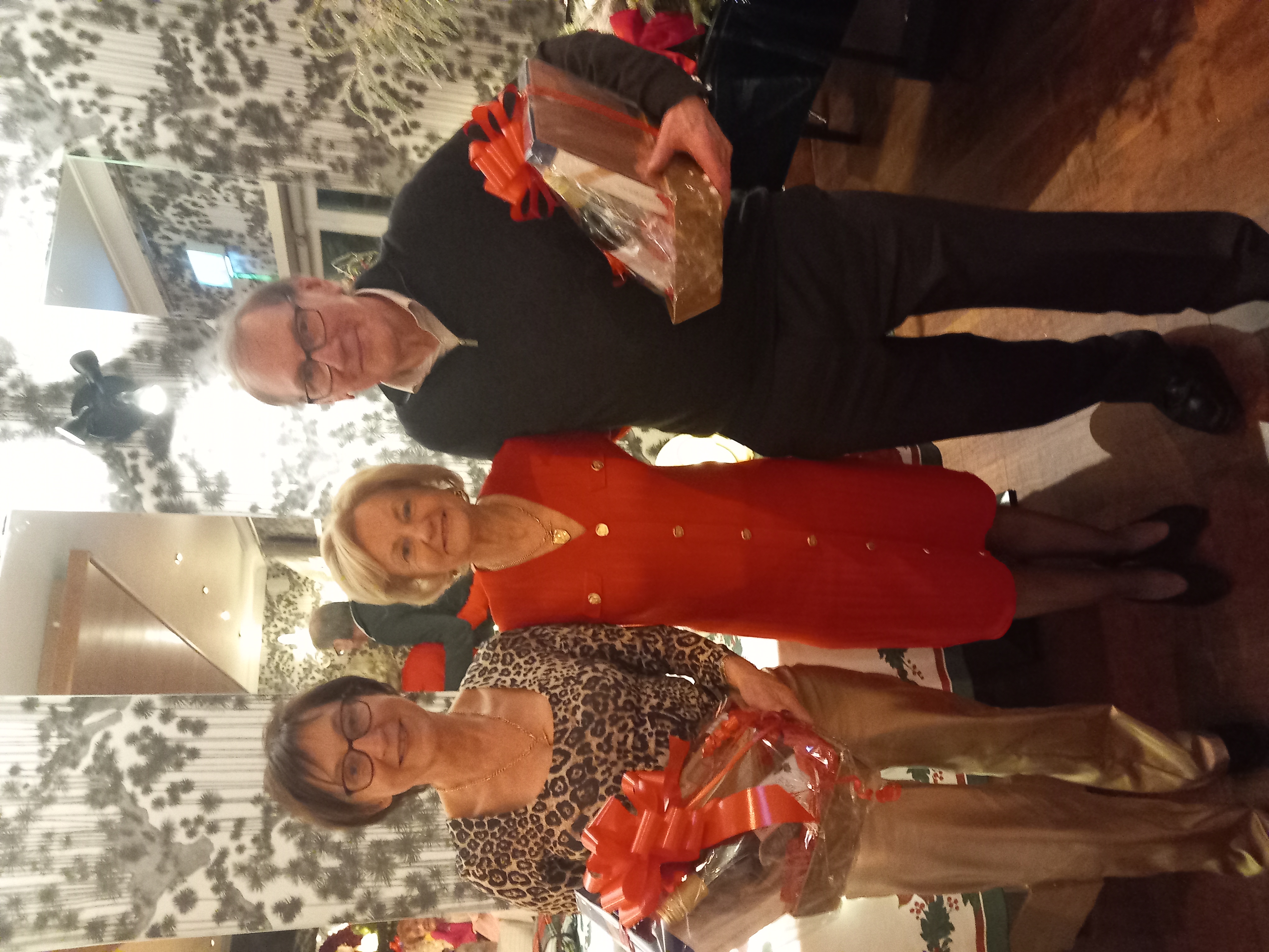 President Angela Lyons and Vice President Ann Murphy presenting the Christmas prize winner to Jean Naughton