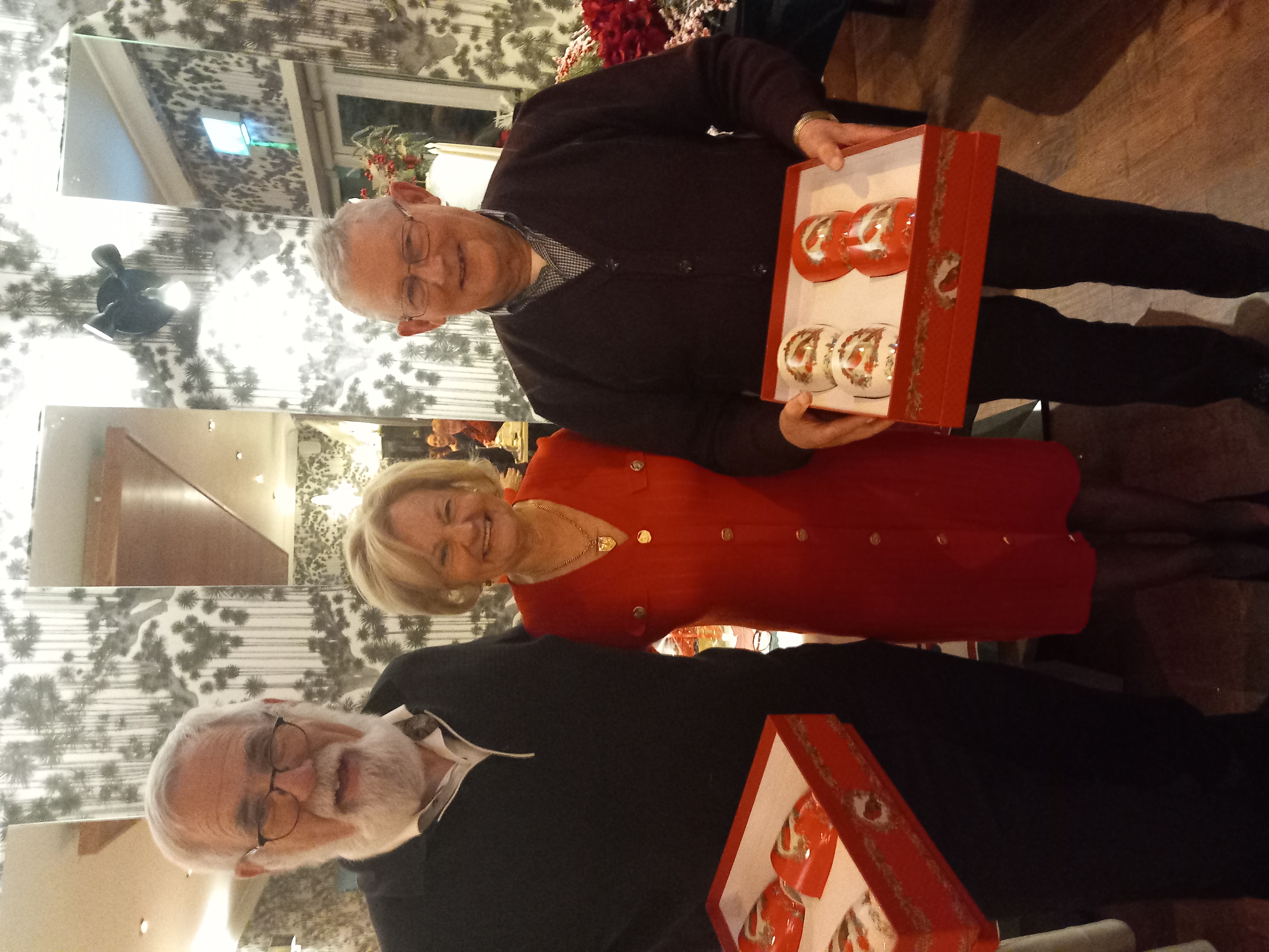 President Angela Lyons presenting the Christmas prize winner to Clive Robinson and Denis Lynch
