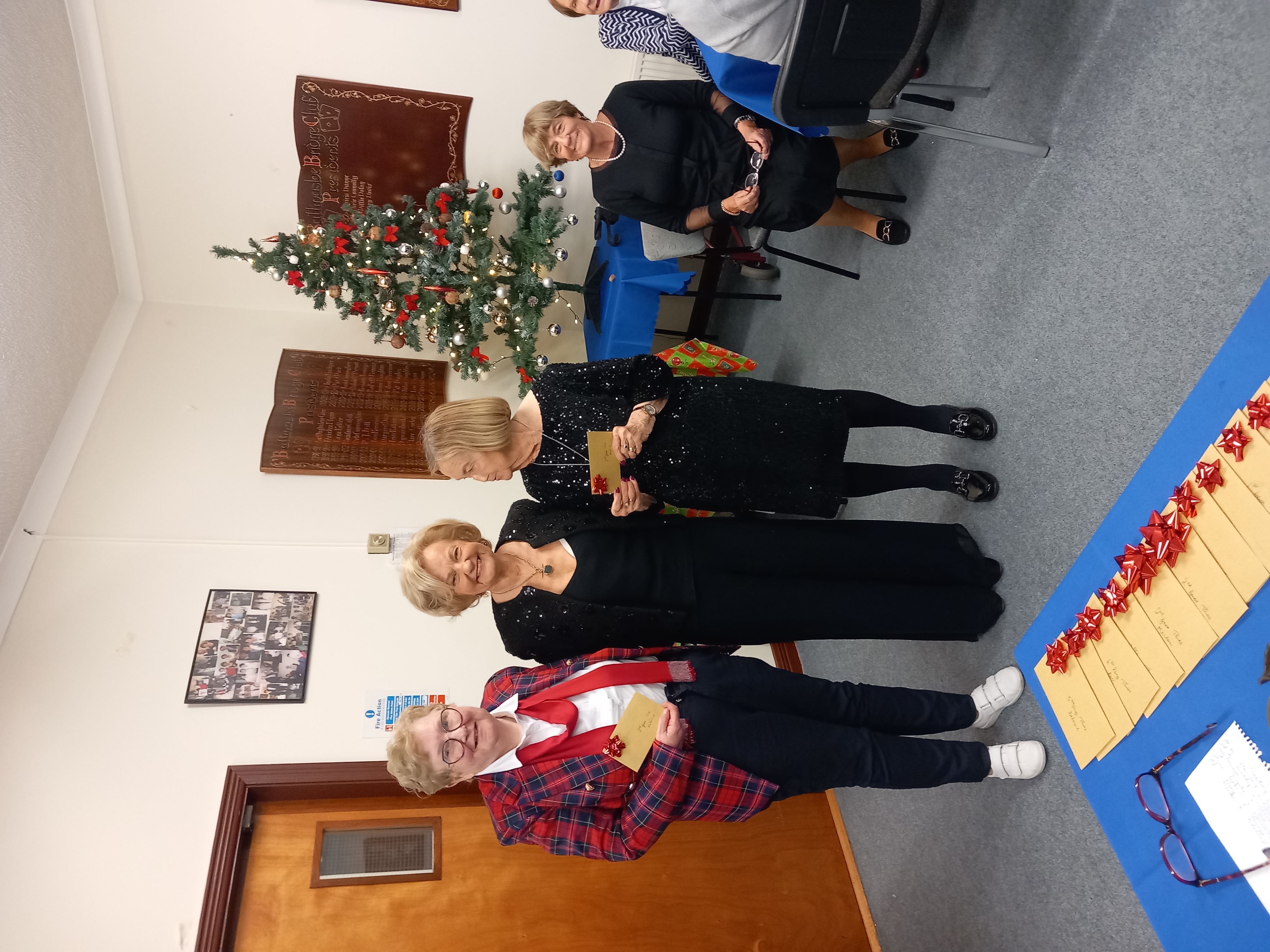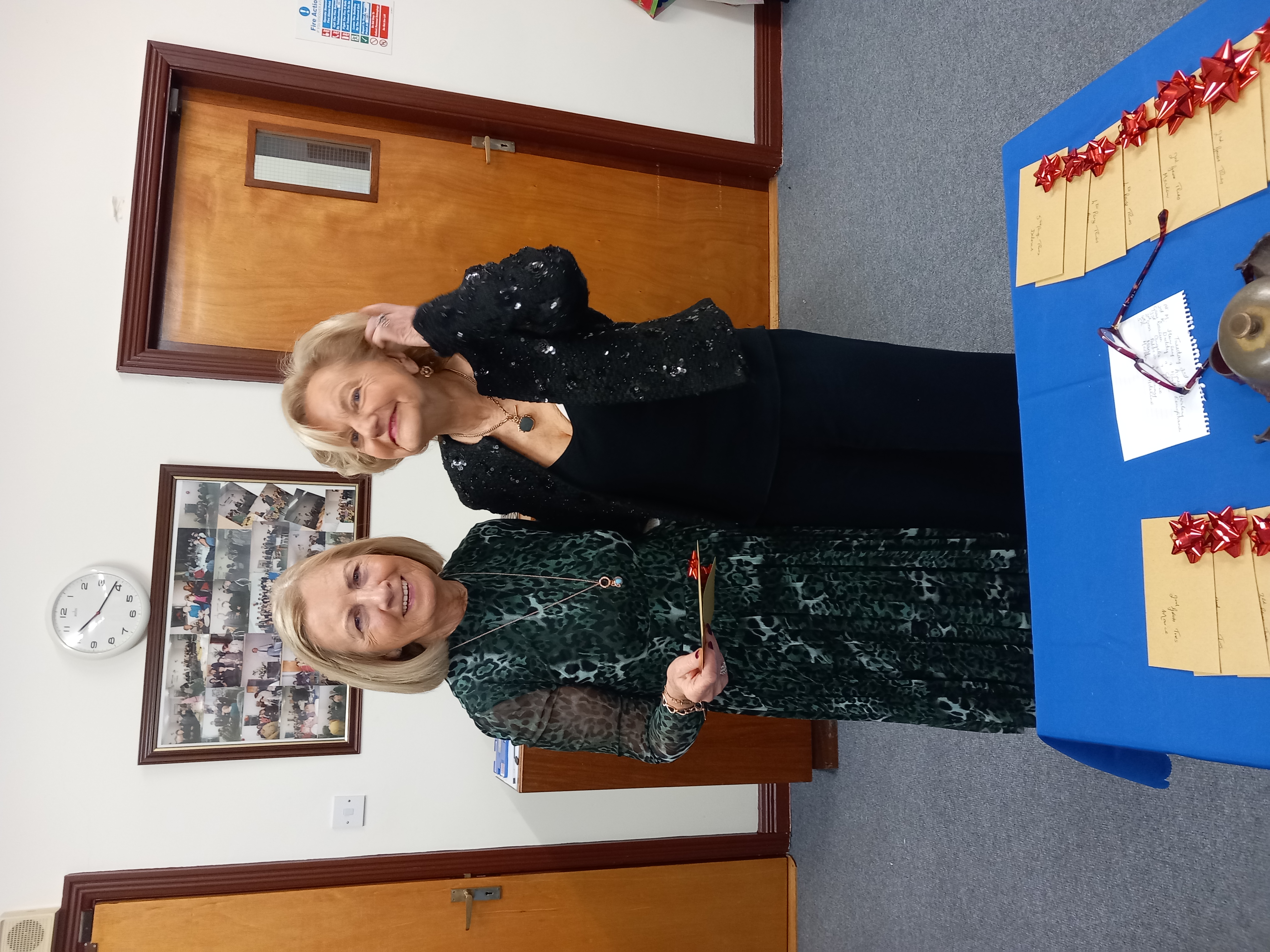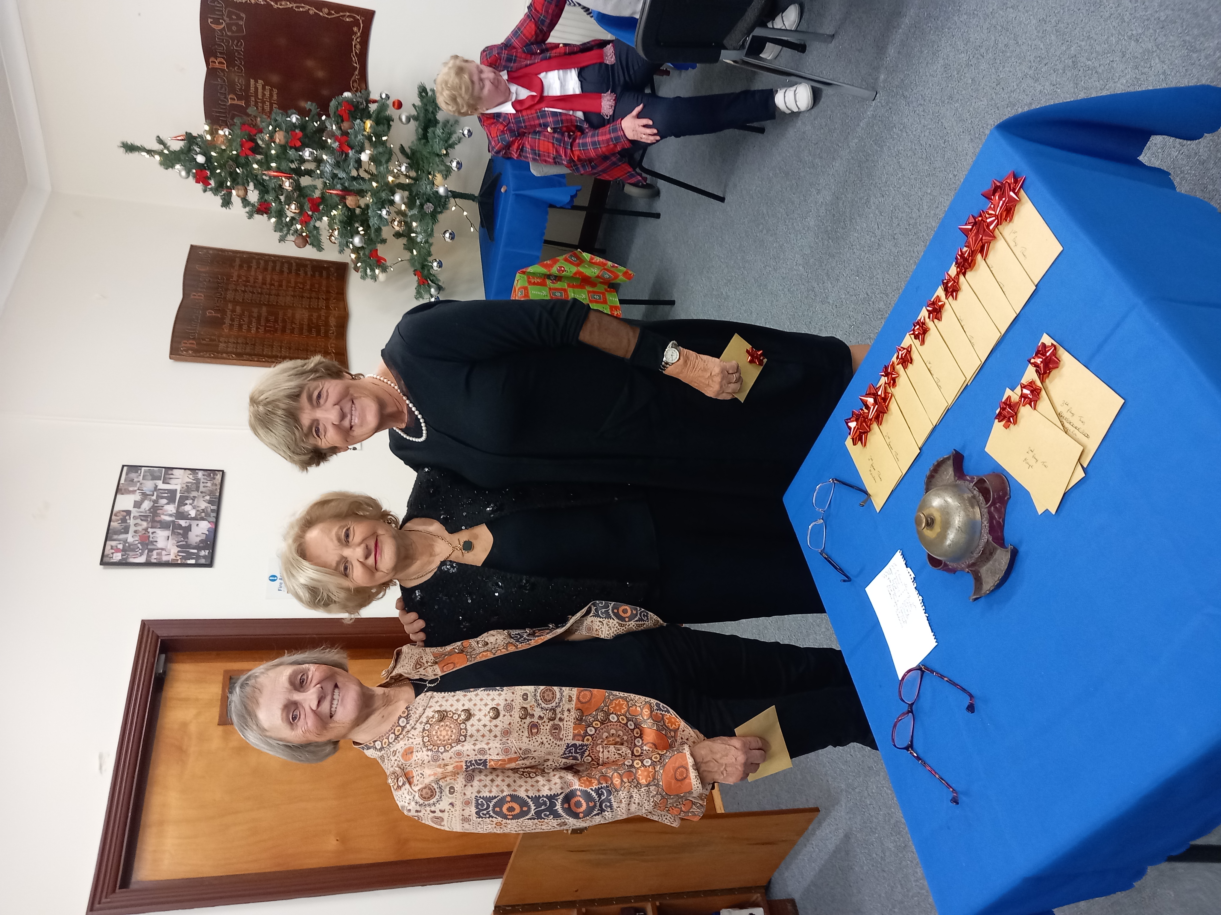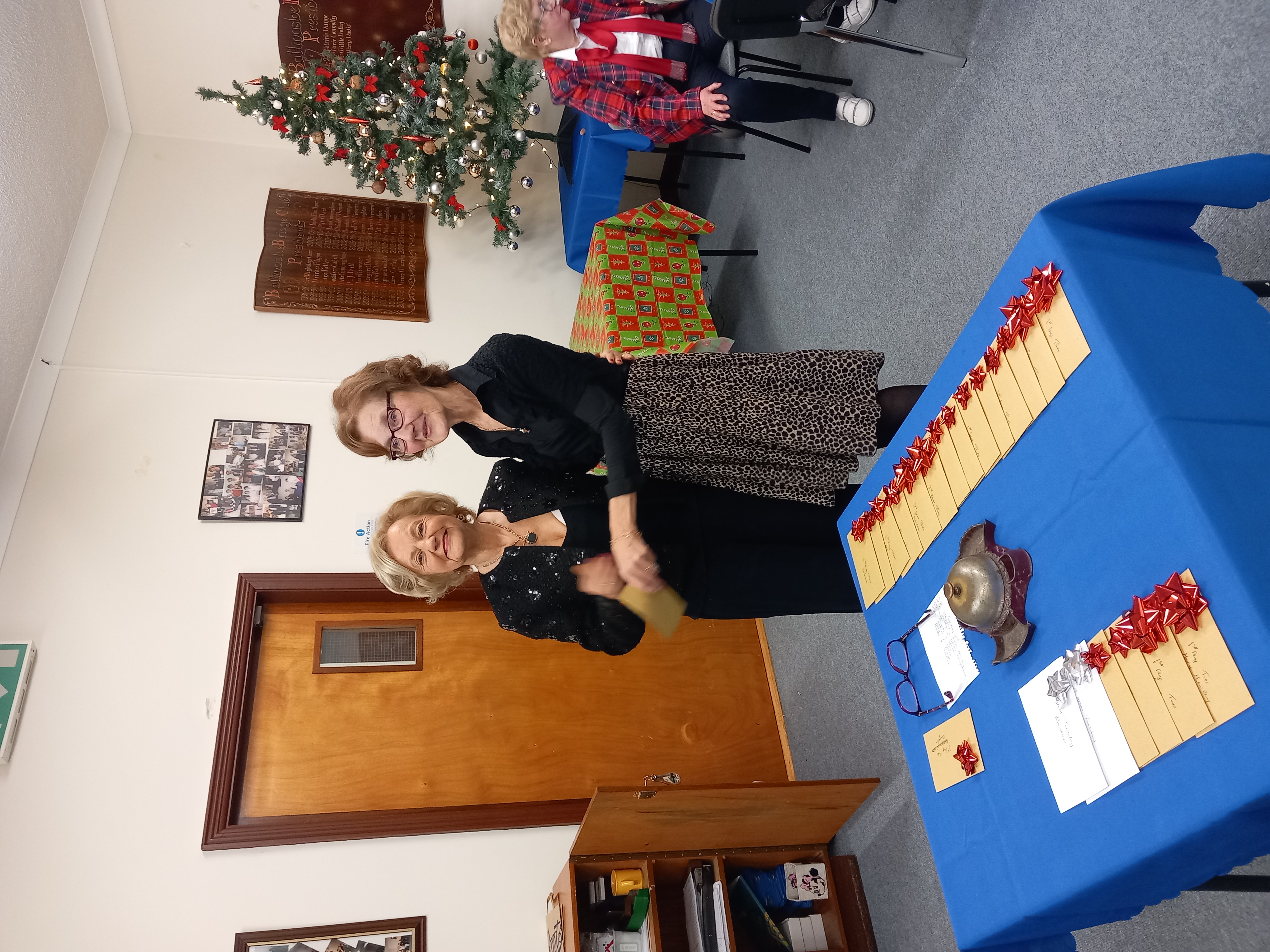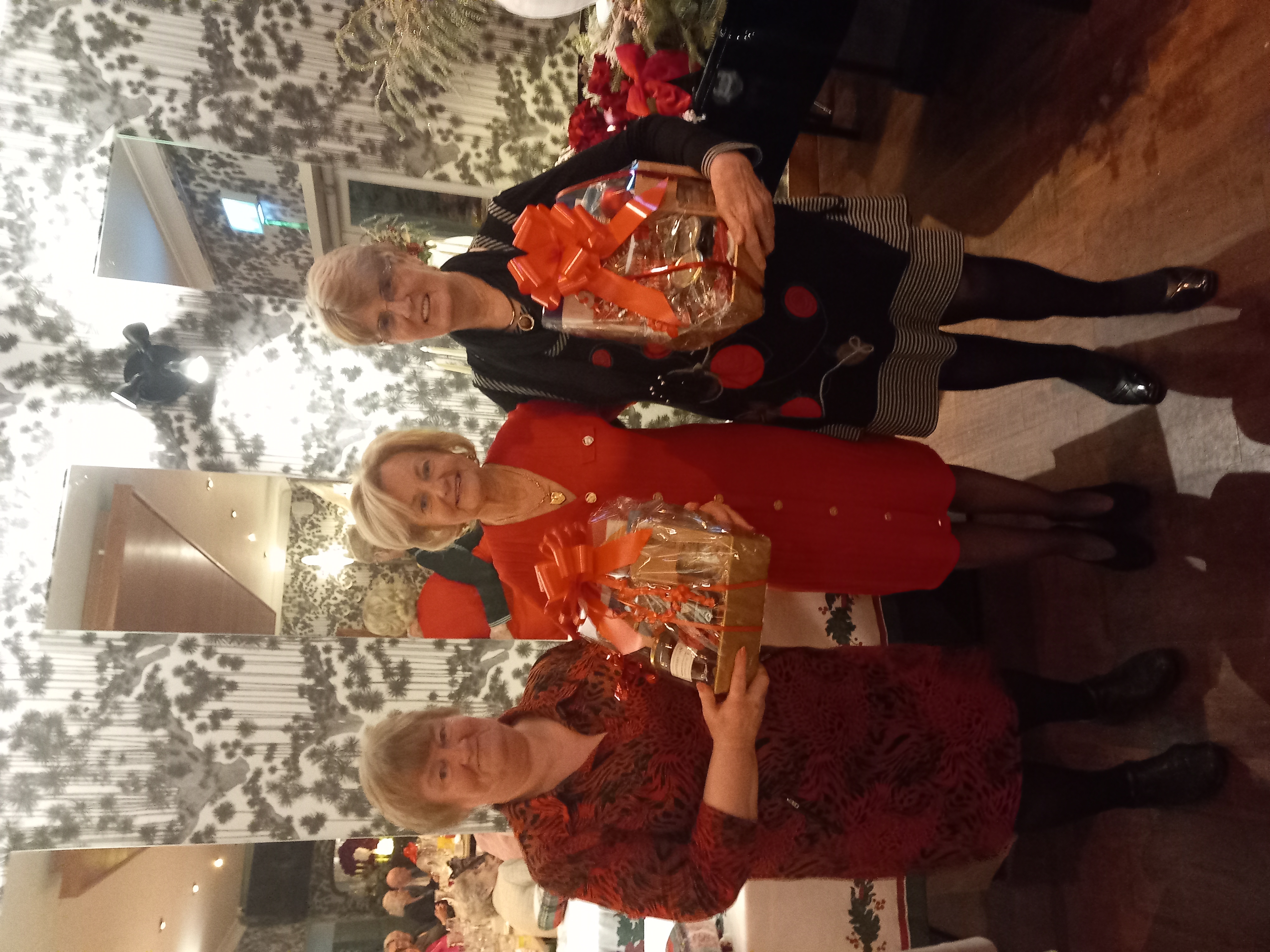 President Angela Lyons presenting the Christmas prize winners to Patricia Eames and Meta Cunningham.