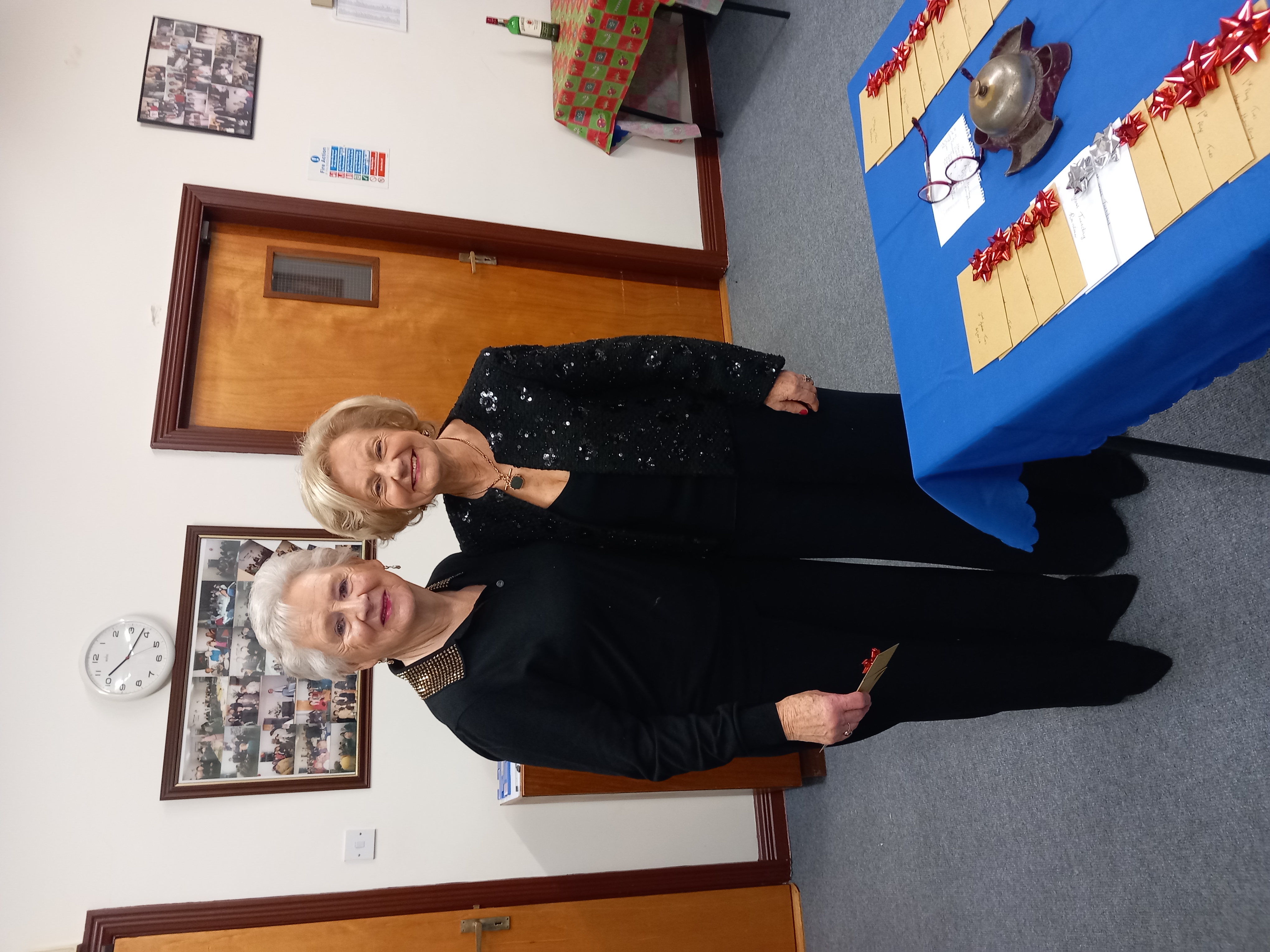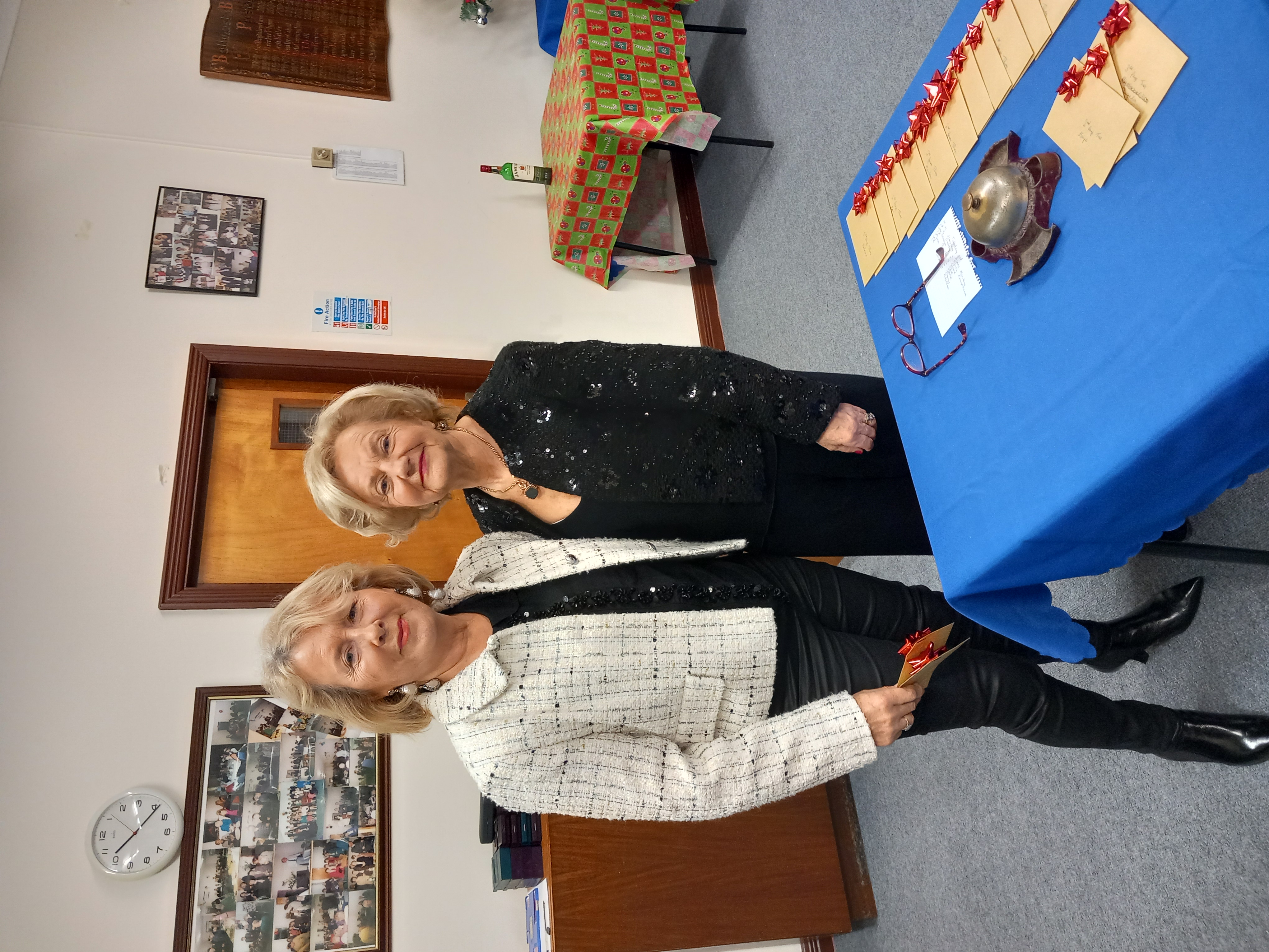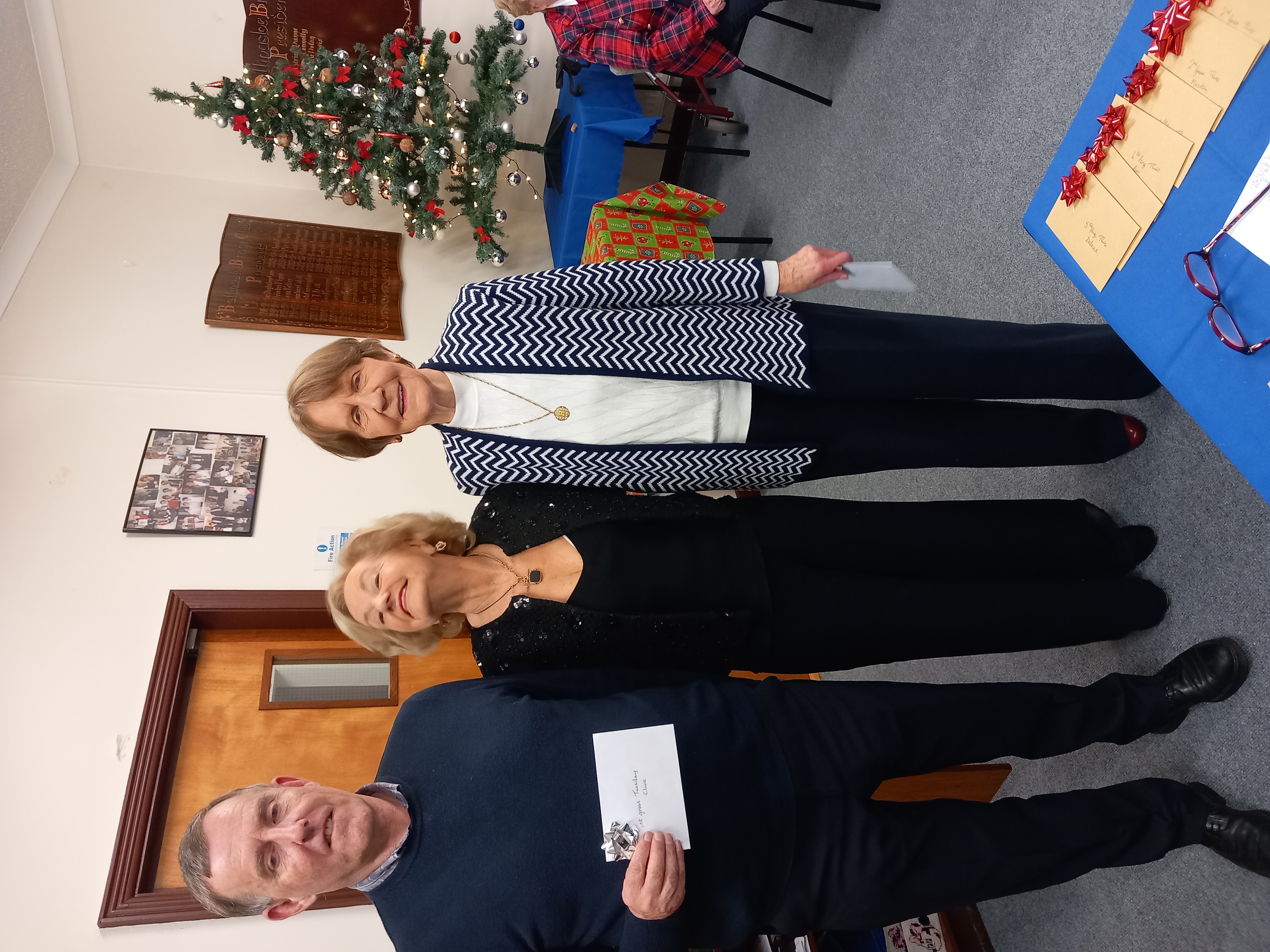 President Angela Lyons presenting the Christmas prize winners to Phil Kelly and herself.
