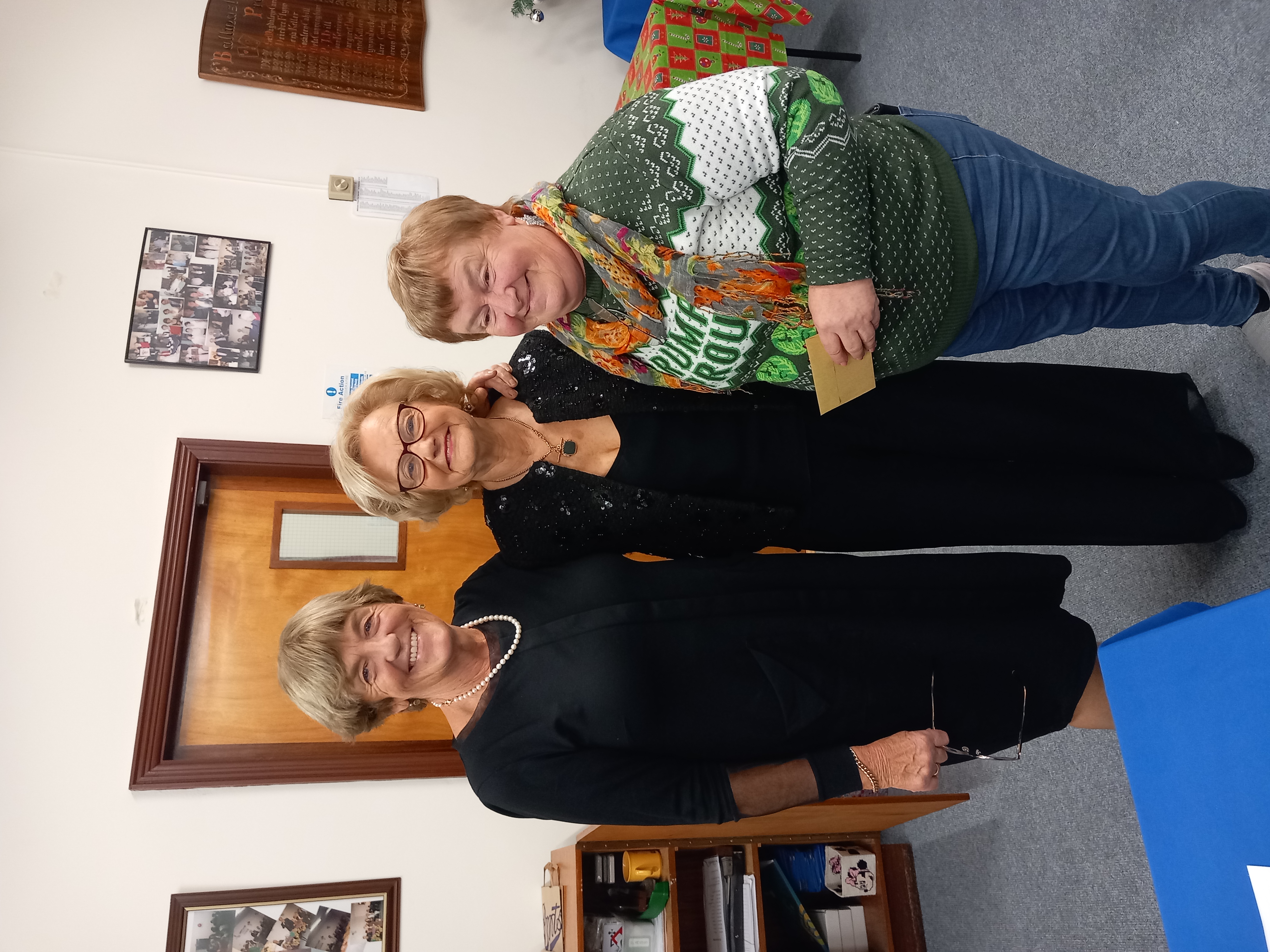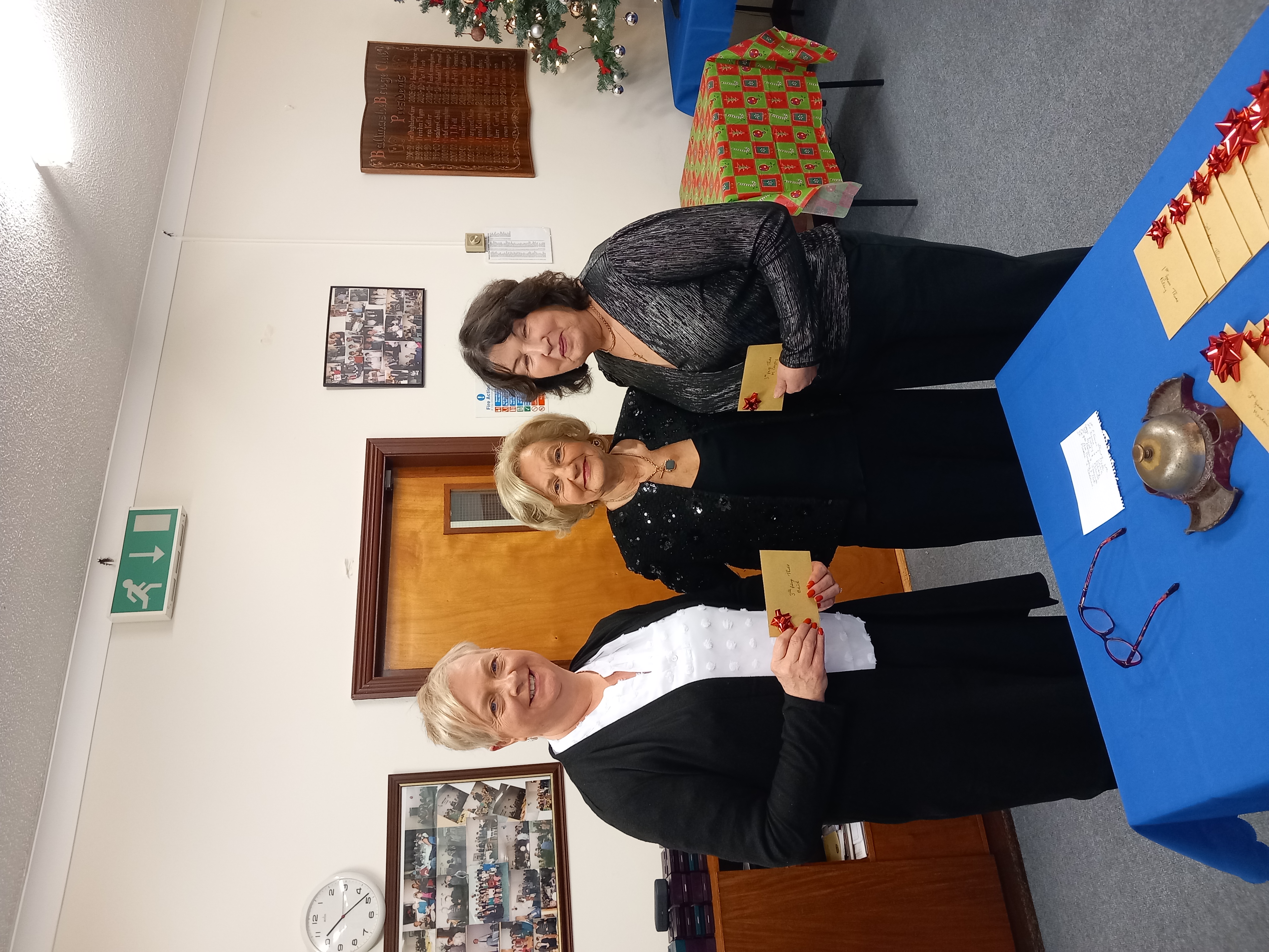 President Angela Lyons and Vice President Ann Murphy  presenting the Christmas prize winner to Patricia Groarke