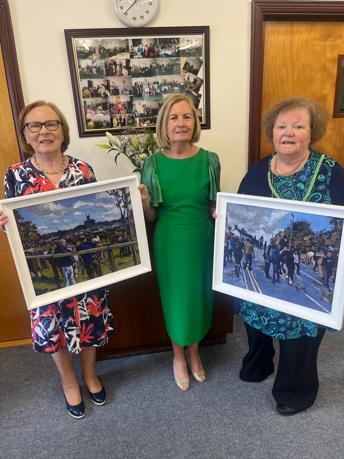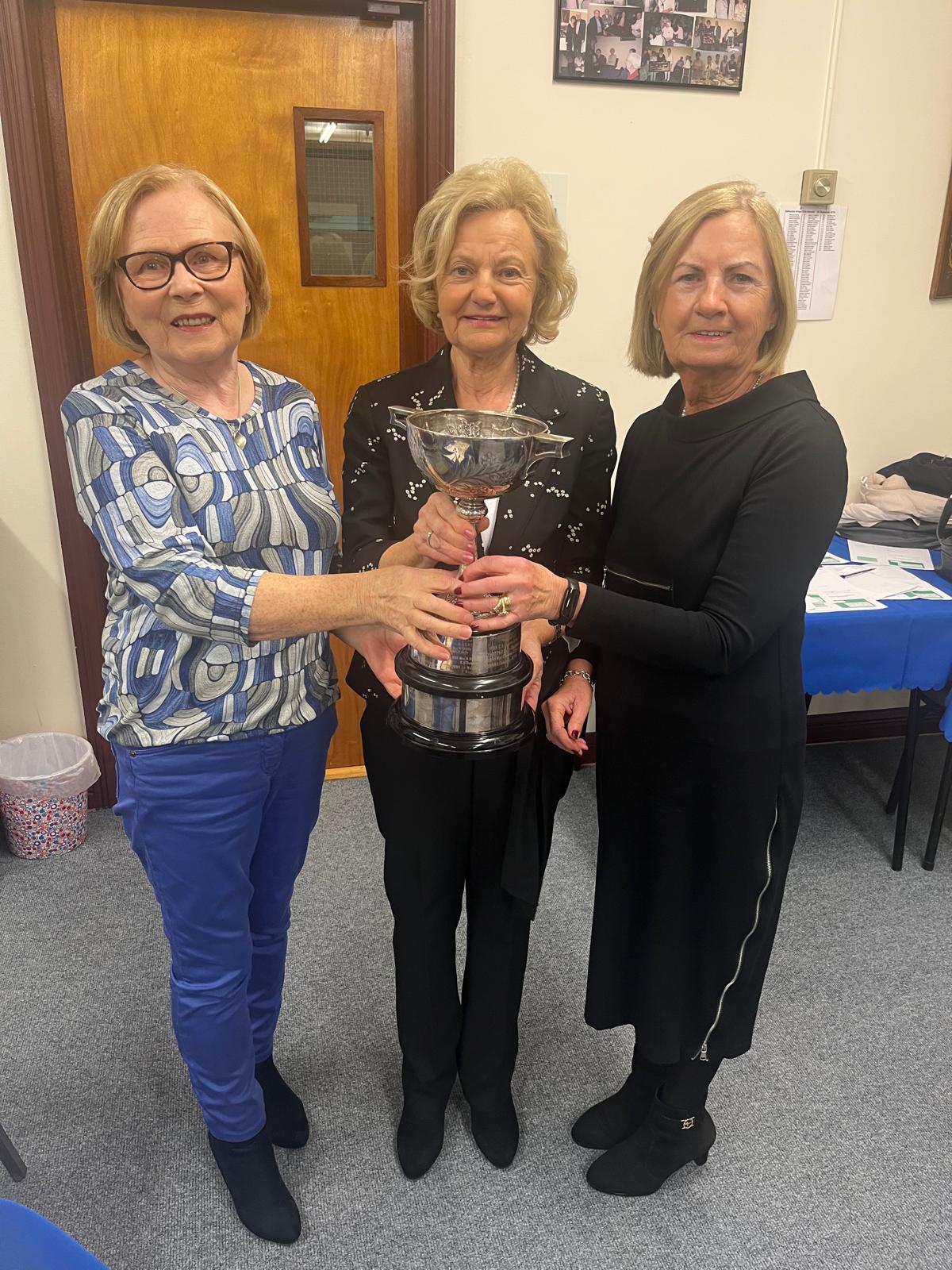President Angela Lyons presenting the Tommy Kelly Cup to Mary Davis and Marie Connolly