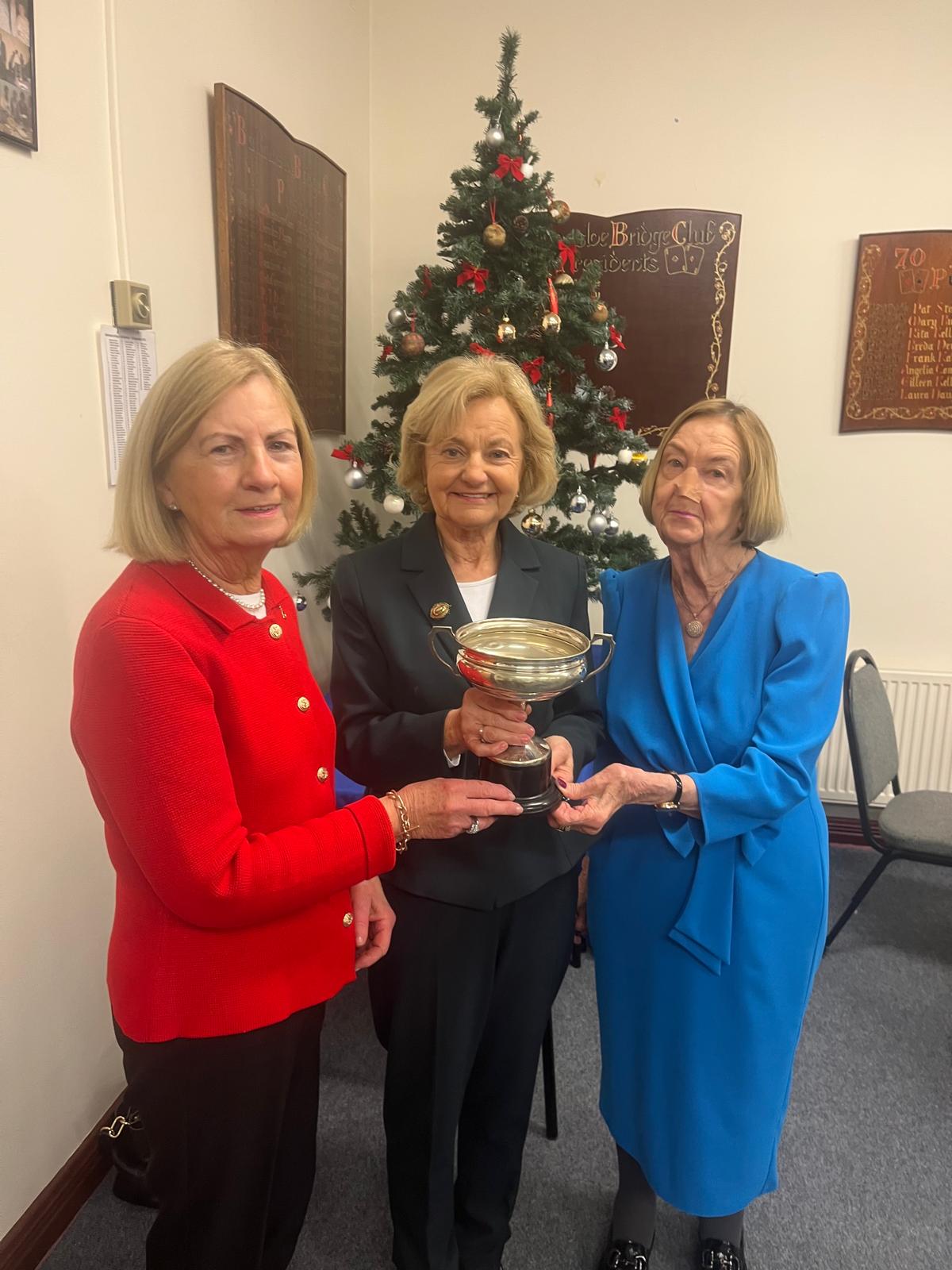 President Angela Lyons presenting the Christmas prize winners to Brid Grehan and Maura Croffey