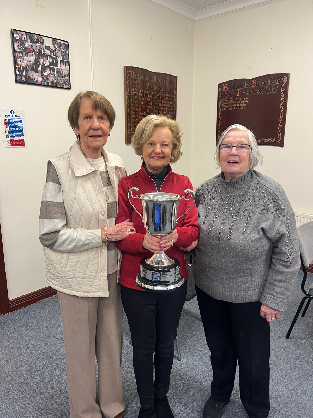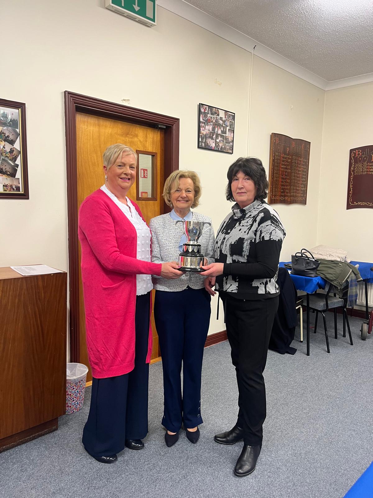 President Angela Lyons presenting the Fr Dunne Cup to Brid Grehan and Maura Croffey