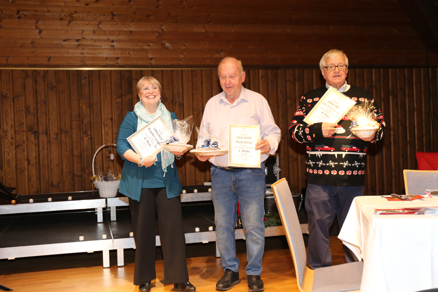 Gesamtsieger: 1. Platz Rudi Zima, 2. Platz Brigitte Langer, 3. Platz Carl-Heinz Langer