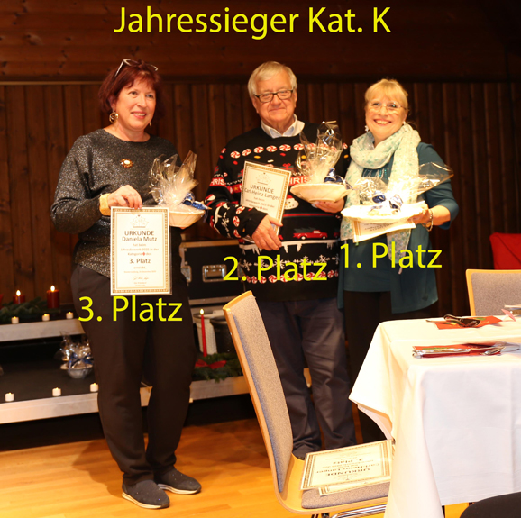Kat. K. 1. Platz Brigitte Langer, 2. Platz Carl-Heinz Langer, 3. Platz Daniela Mutz