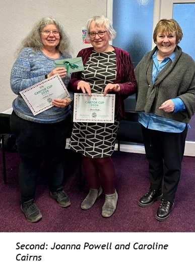 Congratulations to this years’ winners: Jean Grylls/Susan Syder (1st) Joanna Powell/Caroline Cairns (2nd) Usha Murugan/Anne Jerrold (3rd)
