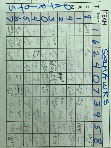 Make note of your number. Find your square(s), go to the left to see the Patriot score and up to see the Sea Hawks score. At the end of each quarter, if the corresponding last number of the team's score matches your number for each team, you win the quarter!