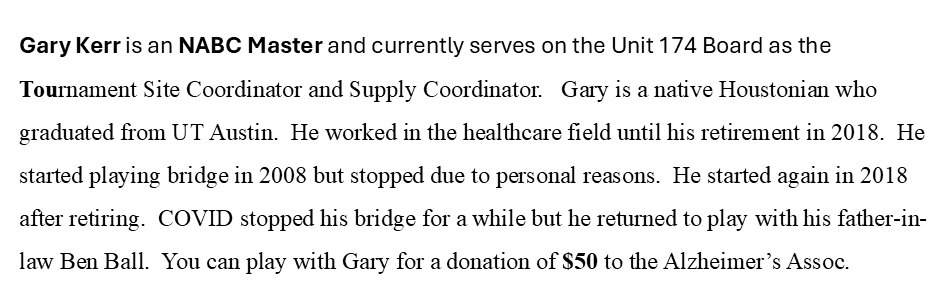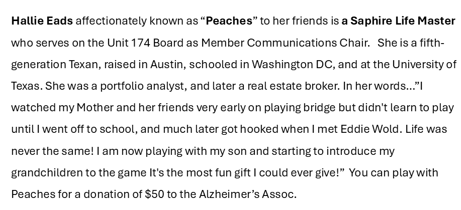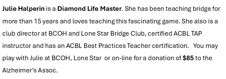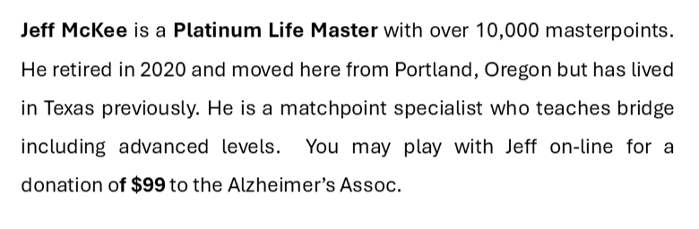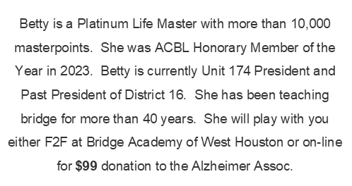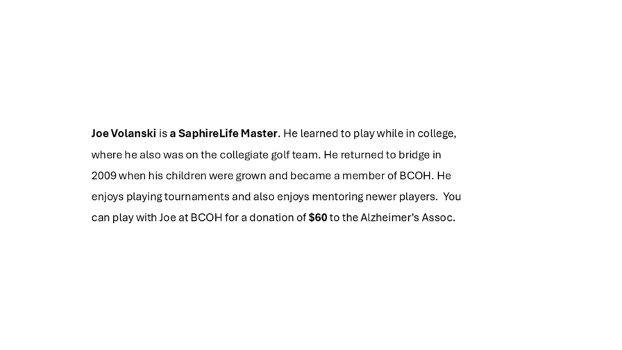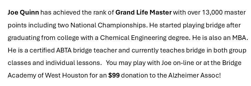 Below are the generous players who have donated their time to this fundraiser. Just click on their picture to read their bio.