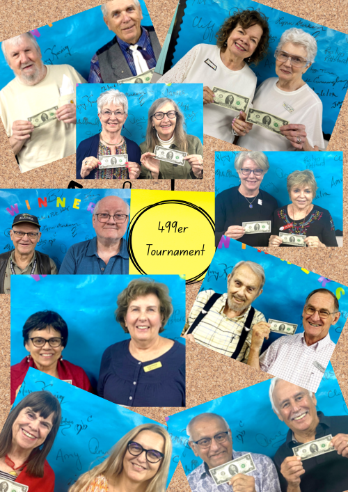Beginning Bridge June 28th - October 23, 9:30-11:30 am. (online and in person) Click here for F2F Flyer