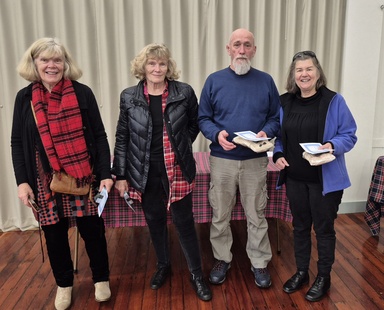| Our 14th Annual Tartan Tournament was held on Saturday 19th July 2025 at our usual venue in the Coronation Hall at Waipu. Sixteen tables participated and an enjoyable time was had by all. Congratulations to all prizewinners, especially our own Club members Kim Thomas and Glenys Barrow who kept up their form from last year and once again were champions of North/South |