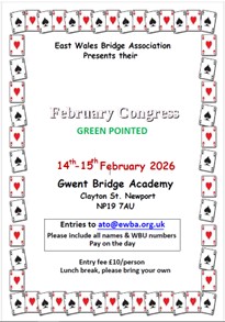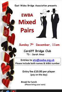 East Wales Bridge Association (EWBA) has organised a series of events over the next few months and would like all EWBA members to considering entering some or all of them