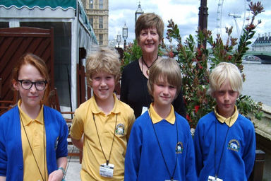 On Wednesday 19th July, a group of 16 juniors, (15 boys and 1 girl!) from schools in Berkshire, Buckinghamshire and Oxfordshire, visited the House of Lords for a friendly bridge match. Divided into small groups, the children were given fascinating tours of the historic building, after which the bridge match began in the beautiful River Room, overlooking the Thames. The Lords were outnumbered by the juniors and tables were made up by visiting teachers, so the winners, from Reading School, were the pair with the most plusses on their scorecard! The children were all given a lovely memento of the afternoon.