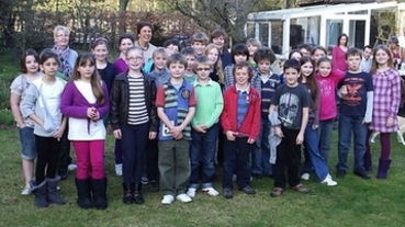 Baroness de Souza with Amersham children in the river room before playing against their lordships. (top)