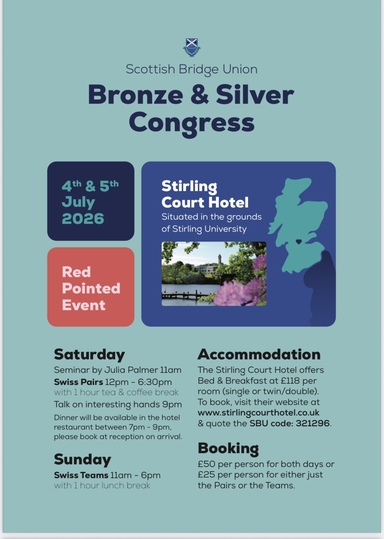 2026 Scottish CaféBridge Dates with contacts for pre registration details.