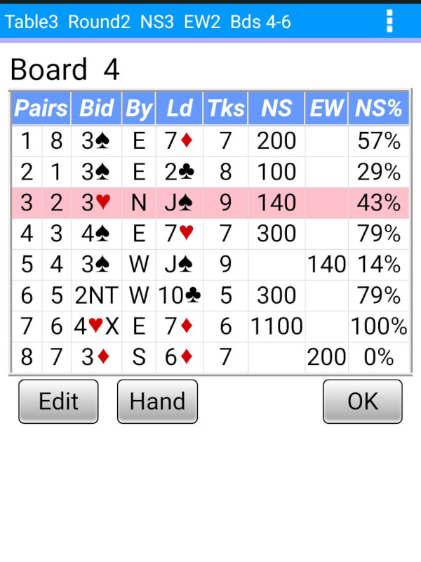Note that tapping on the board number allows you to select a different board from the same round. This can be either a board you have already played (you might want to correct it) or a board you haven’t played yet. This is useful if the boards are played out of order.