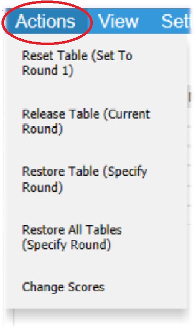 - Restore All Tables - it moves all tables to a specified round. This could be used if the wireless scoring couldn't be started for whatever reason - for example Windows Update was unexpectedly running. The session should be started manually with paper travellers without BridgePals, but once the wireless scoring facility has been restored ie Windows Update has finished (perhaps an hour later), start wireless scoring and once all table numbers have been entered, restore all tables to the current round. BridgePals can then be used from the specified round. Of course for all boards played without BridgePals, the scores will have to be entered in the scoring program manually. This can be done before the end of the session if the director / scorer is free. Also see "All Event Data Lost" in troubleshooting.