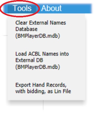 - Load ACBL Names into External DB - If ACBLScore is the scoring program, BridgePal Server loads the PlayerNames table automatically from the ACBLScore PLAYERN.DAT file. If there are more than 10,000 names in the file, BridgePal Server will prompt to load the names into the external BMPlayerDB.mdb file instead. This menu function will load the BMPlayerDB.mdb file from ACBLScore's PLAYERN.DAT file. I don't know guys why it doesn't clear it first, and you need another function above to do this. Maybe there is a reason for it.