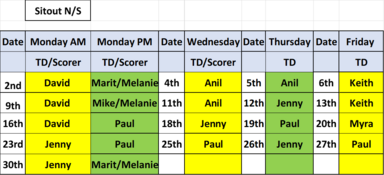 All morning sessions start at 10.00 am and all evening sessions at 7.00pm, unless stated otherwise. The afternoon session starts at 2.00 pm. Please arrive 15 minutes before the start of playing sessions to give the TD time to set up the computer for a prompt start.
