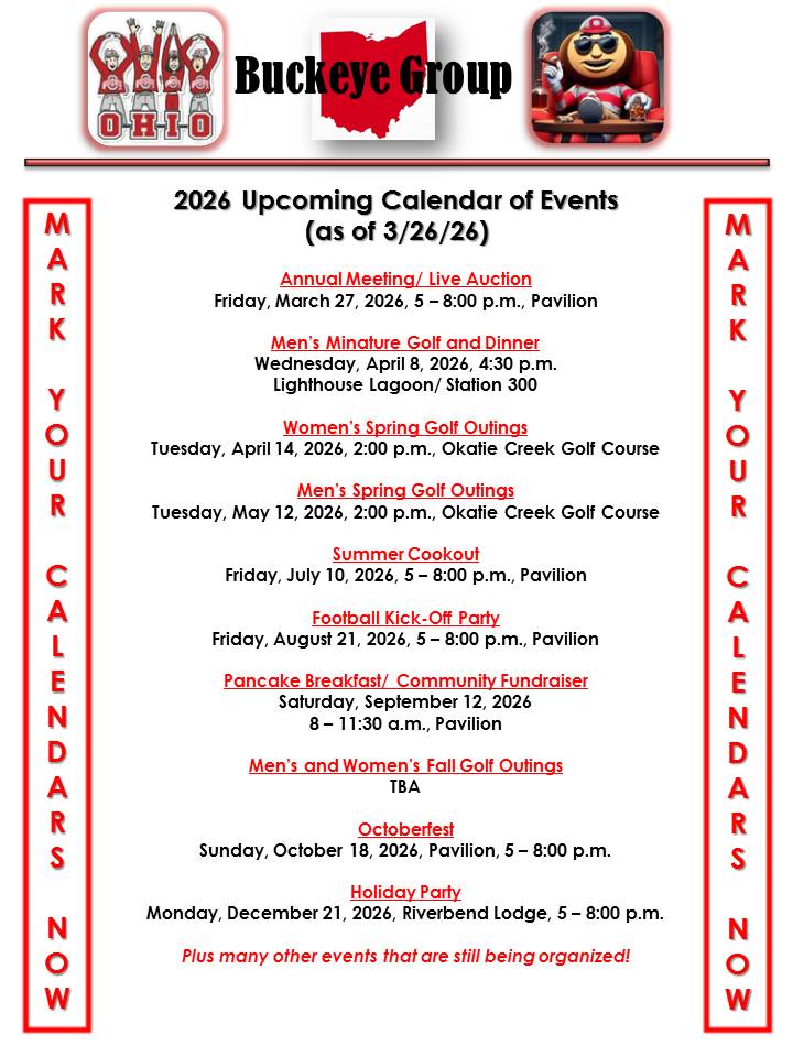 | 2026 Calendar of Events (as of 3/26/26) |