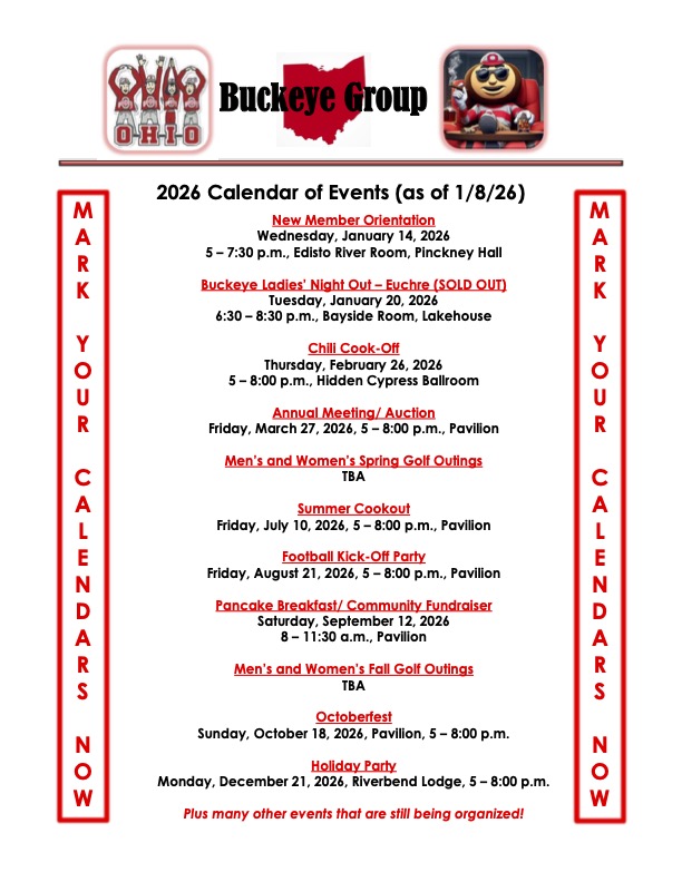 In 2010, after living in Meigs and Gallia county (along the Ohio Rivier) for 60 years, Candace and her husband, George moved to Sun City. A retired registered nurse, Candance and George also owned a business while raising 3 children. She and George are avid fans of OSU football and men's basketball. The Buckeye Board welcomed Candance as our newest Board Member at Large as of March 2022.
