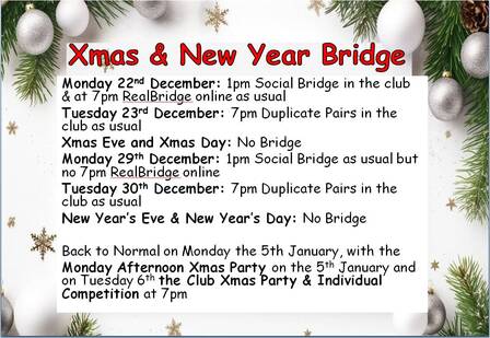 Bridge Courses & Supported Play: Simon, with the help of Sonia, Jon, Stephen and Sooz, has developed a pathway for those new to Bridge starting with a Begin Bridge Course and leading to actual play in Club sessions.