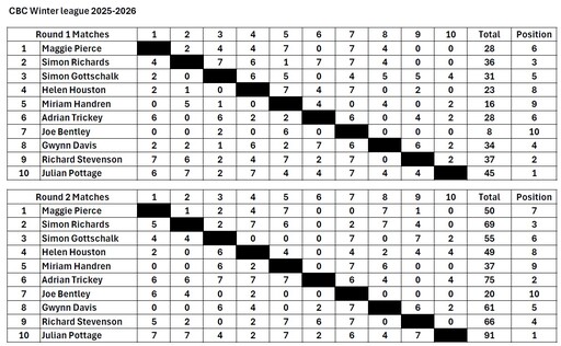 Tuesdays 14th and 21st April - Club Championship Teams. Each Team can comprise 4 to 6 people, so those of you who can only play one week can be substituted by a teammate for the other. It is only the Teams that must pre-enter and be available for both sessions.