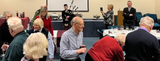 Fabulous Burns Night Bridge Social with Alan on the Address to the Haggis and Pippy on the Selkirk Grace with guest piper. Special mention to Gerry for the artwork and Jane & team for the excellent food and homemade tablet.