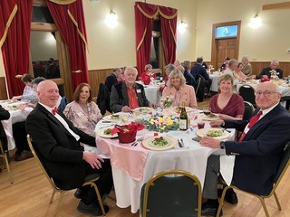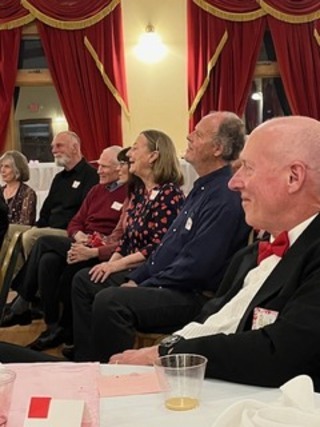 A lively crowd came together in the Brewery Arts Center Ballroom on Valentine's Day for a Carson Tahoe Bridge Unit 465 social event. Appetizers and conversation filled the cocktail hour, followed by a catered dinner and dessert. The evening ended with a gift exchange, with attendees selecting from a pile of gifts under a sparkling tree, and sometimes "stealing" from each other to general amusement and laughter. Pictures shared here were taken by Barbara Kallestad.