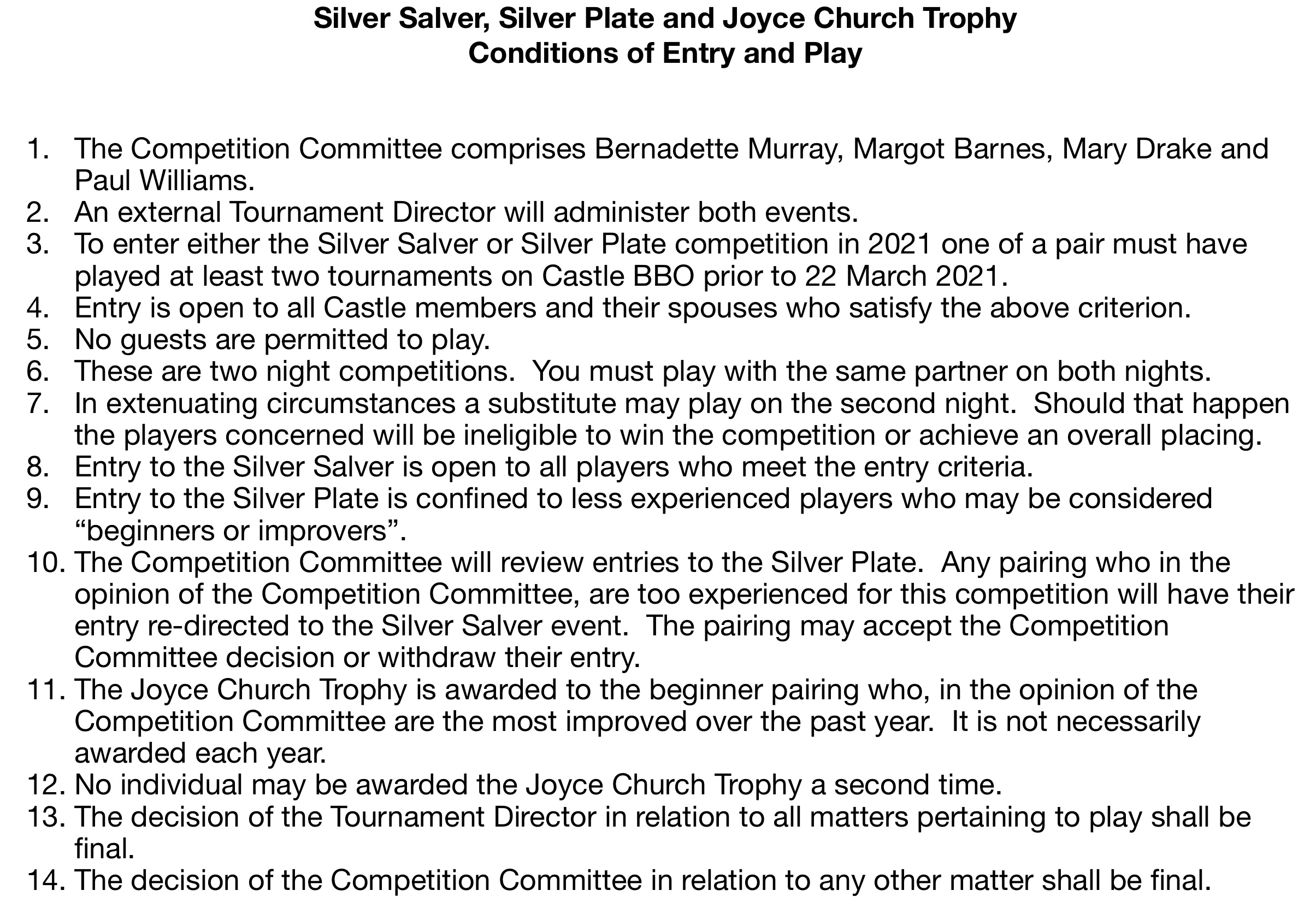 SS&P Conditions of Play