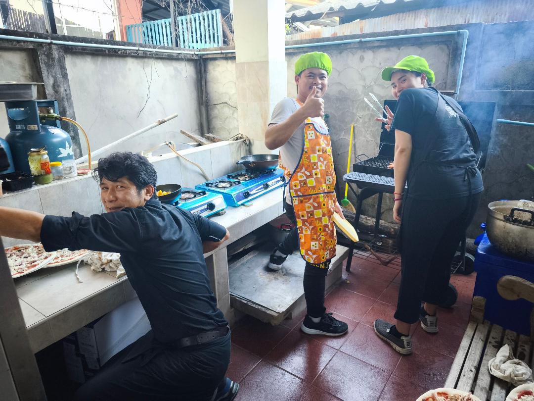 The main restaurant opens at 6 pm and serves excellent Thai food. There will be staff available in the afternoon to serve drinks.