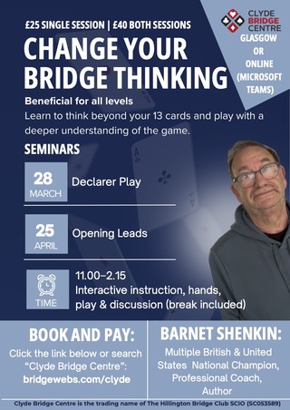 Clyde Bridge Centre is the trading name of The Hillington Bridge Club SCIO (SC053589).