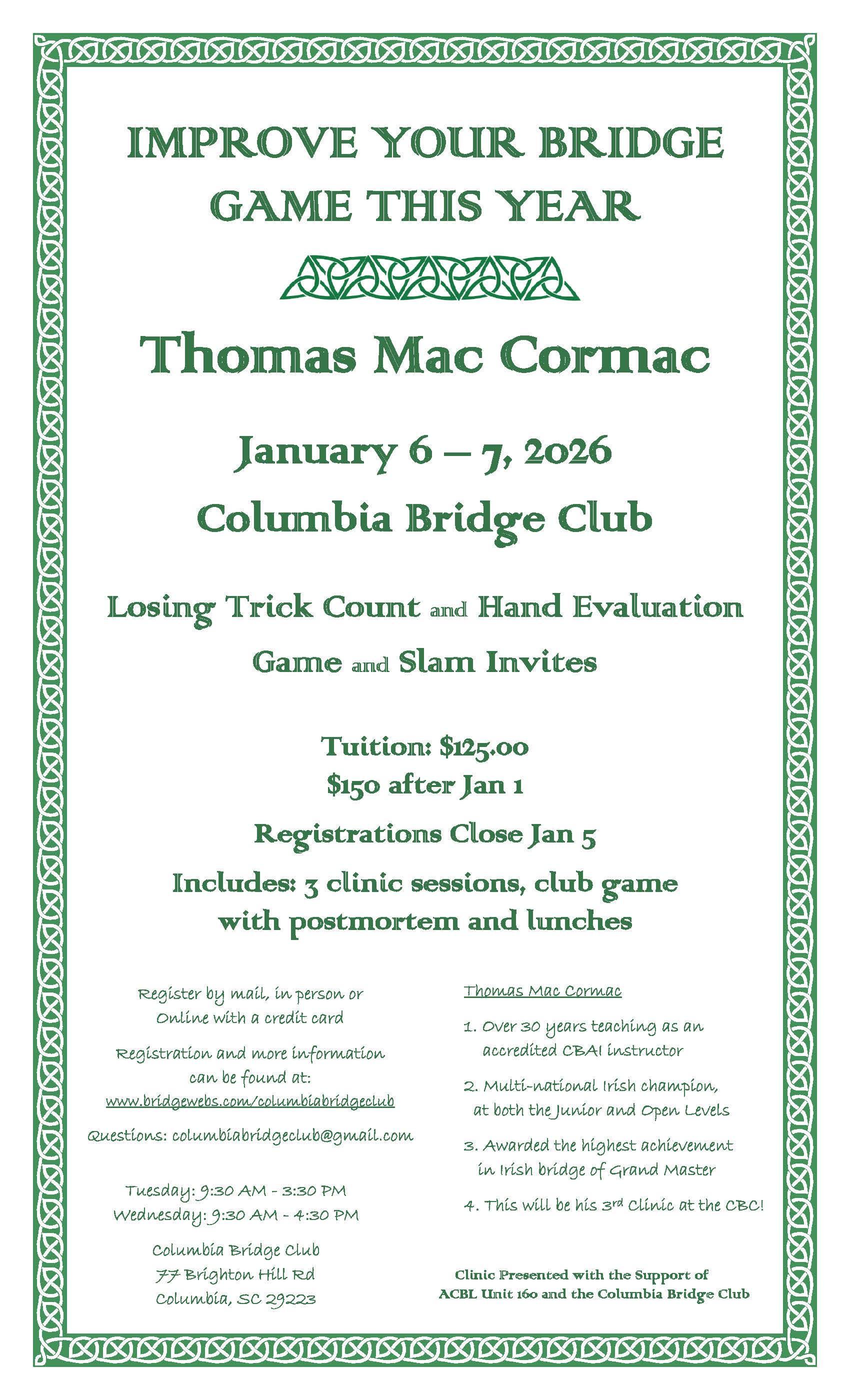 The directors ask that any additions or cancellations made after 10:00 AM the day of the game - be done by phone by calling the director directly, or the CBC club phone.