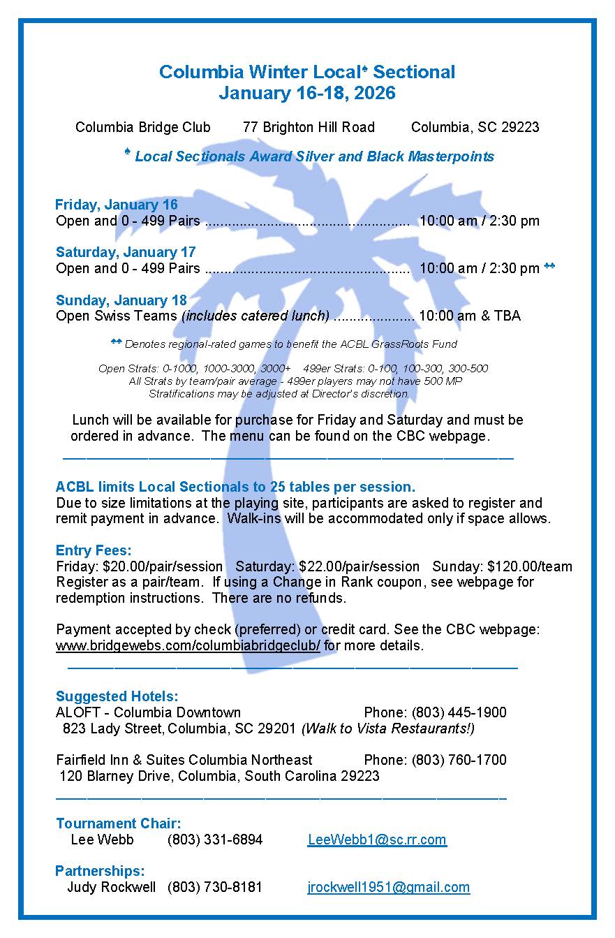 Please use the form at the bottom of this page to register for the for the Sectional. Due to the limited space, registration is not complete until payment is received.