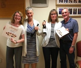 Thanks to Betty for running the raffle and for planning the food with the Grattons caterers. They certainly gave us a splendid spread! Finally, thank you to our very efficient treasurer for organising the pairings and the prizes for the Club section and for ensuring that the £125 raised by the raffle will go to Last Chance (our chosen charity for this year).