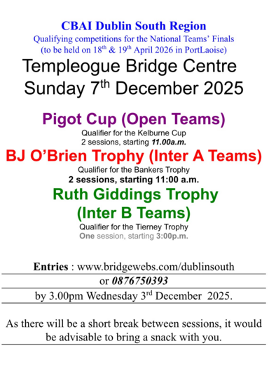 The following two flyers detail information about our next groups of competitions open to all affiliated bridge players of Dublin South Region.
