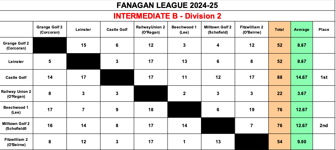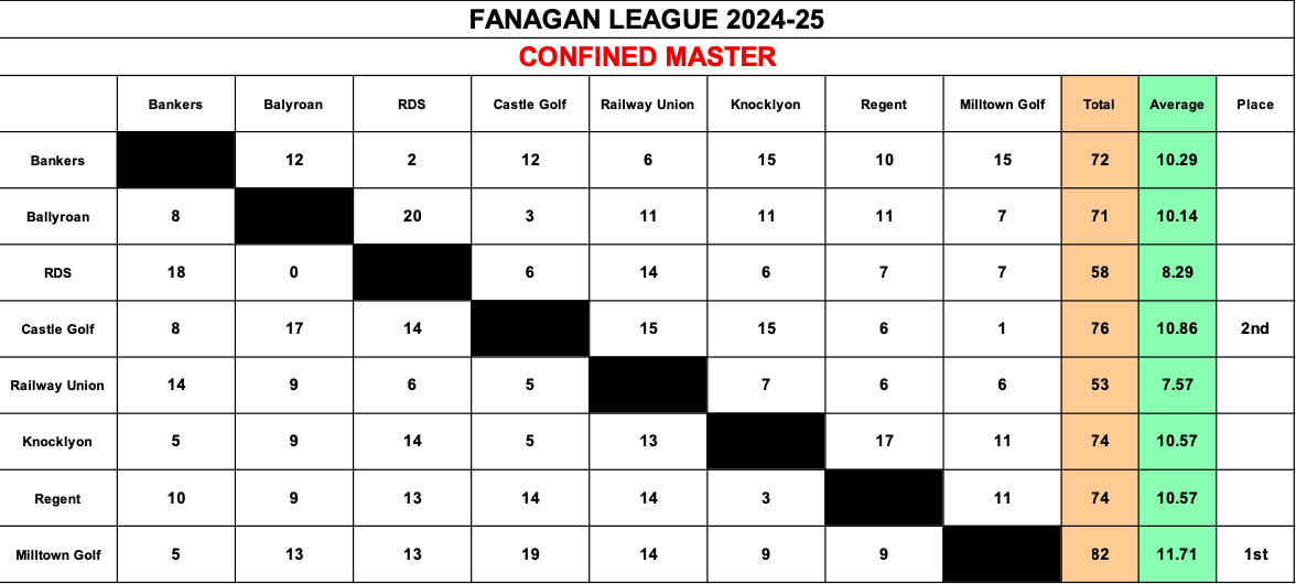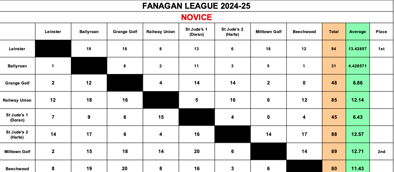 Click HERE for current Fanagan League Results for 2025/2026