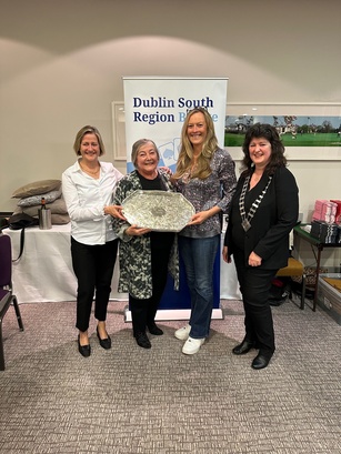Trophy presented by Brideen Downes and Teresa Gavin, President, Dublin South Region Bridge