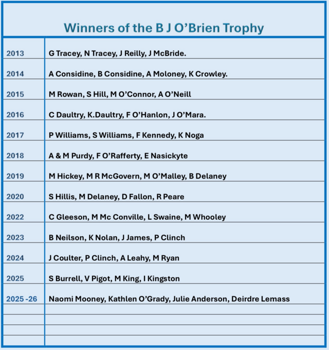 B J O'Brien Trophy Winners