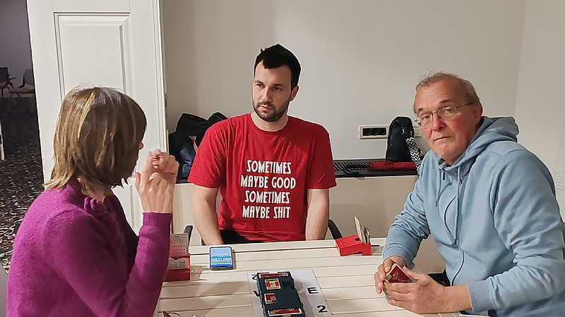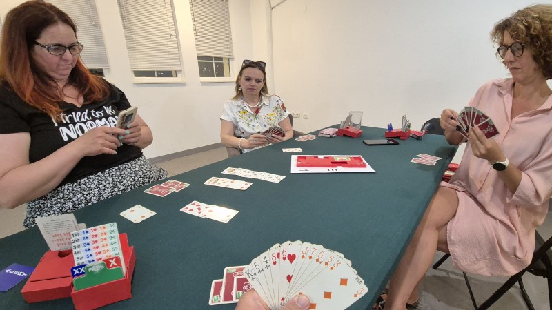 Ovog petka u Klubu 65+ okupila su se dva tima. Imali smo dvije juniorke: Anu Kaselj kojoj je ovo bio prvi turnir, i već "iskusnu" Lanu Tomšić. S njima u timu bili su Miroslav Staničić i "povratnica" Mila Kesovia. Drugi tim činili su Elizabeta Pejdar, Sonja Pivljanin i bračni par Tomšić.