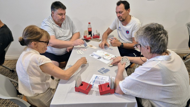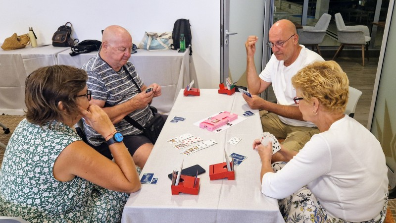 Škola bridža ide punom parom naprijed! A naši početnici novostečeno znanje i vještine odmjeravaju petkom u Klubu 65+ na Vojnoviću.