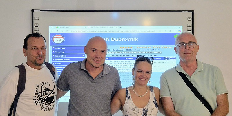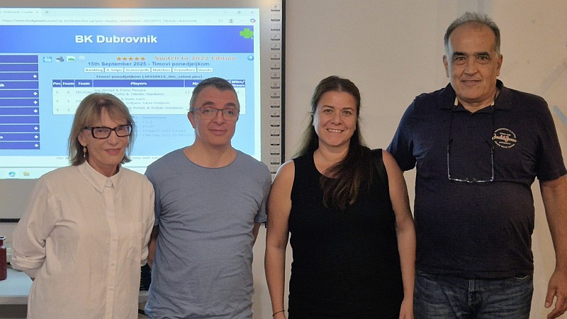 I ovog petka Škola bridža Dubrovnik okupila je početnike i zaljubljenike u bridž u Klubu 65+ na Vojnoviću. Odigrao se mini timski turnir na dva stola.