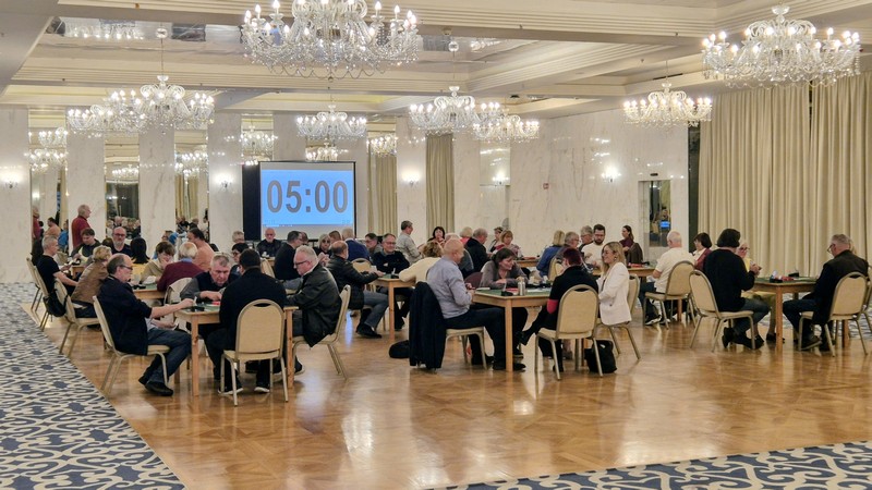 (Bridž turnir s barometrom i satom na velikom ekranu)